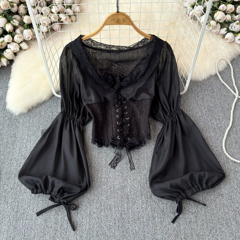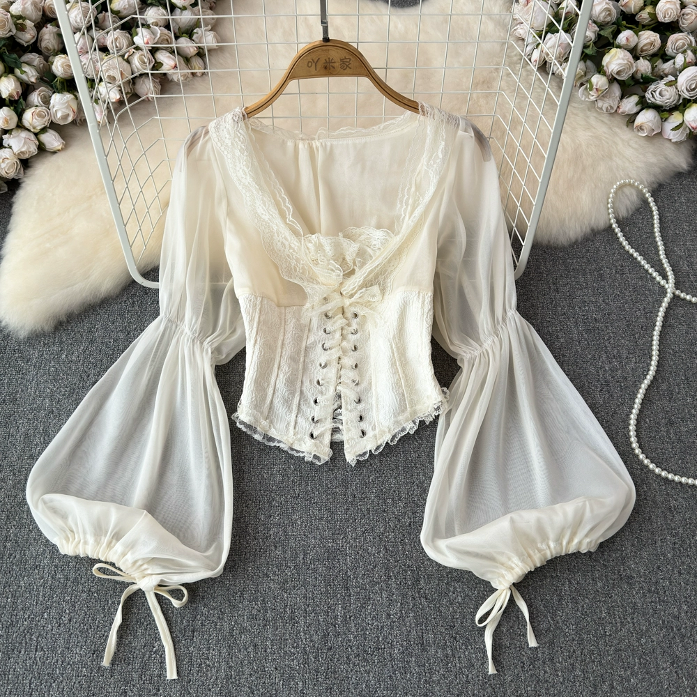 | nameOriginal | Palace style ruffle shirt fishbone top lace |