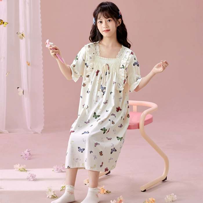 | nameOriginal | Palace style solid color lace parent-child wear home wear nightgown |