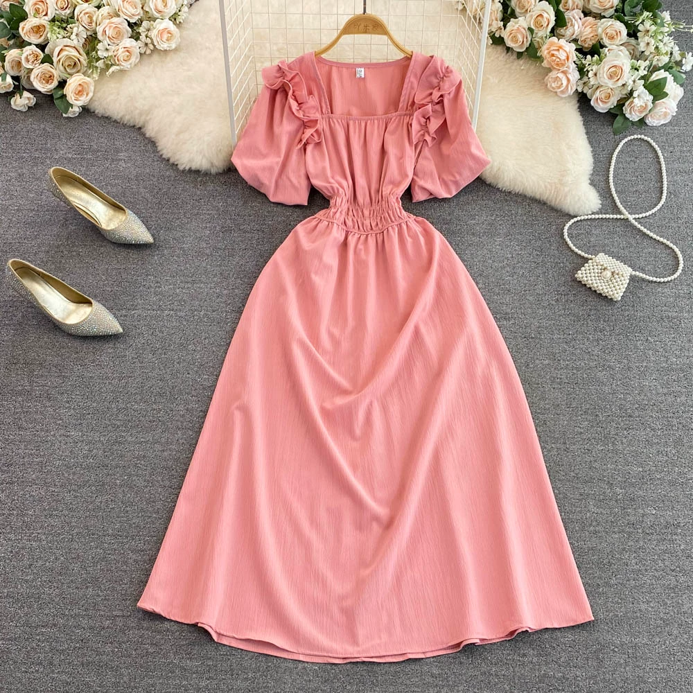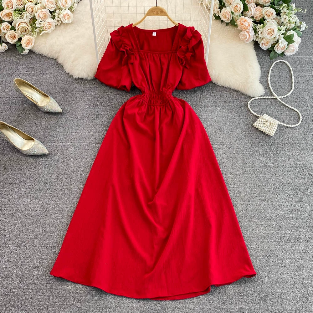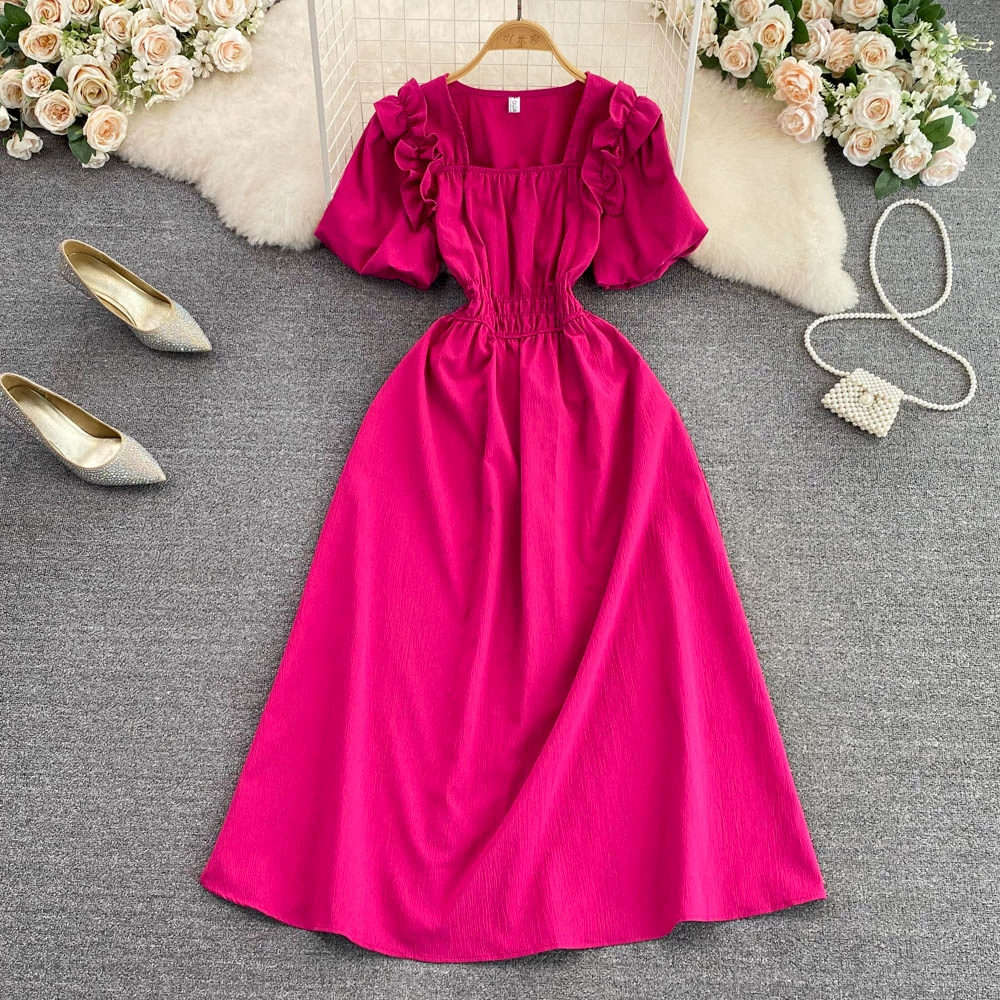 | nameOriginal | Palace-style square-neck bubble dress with elegant short sleeves |