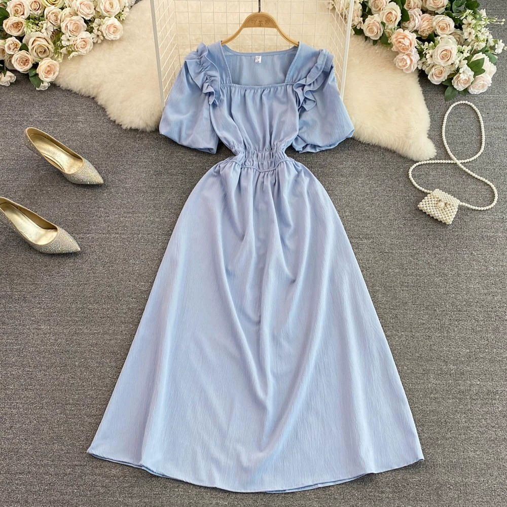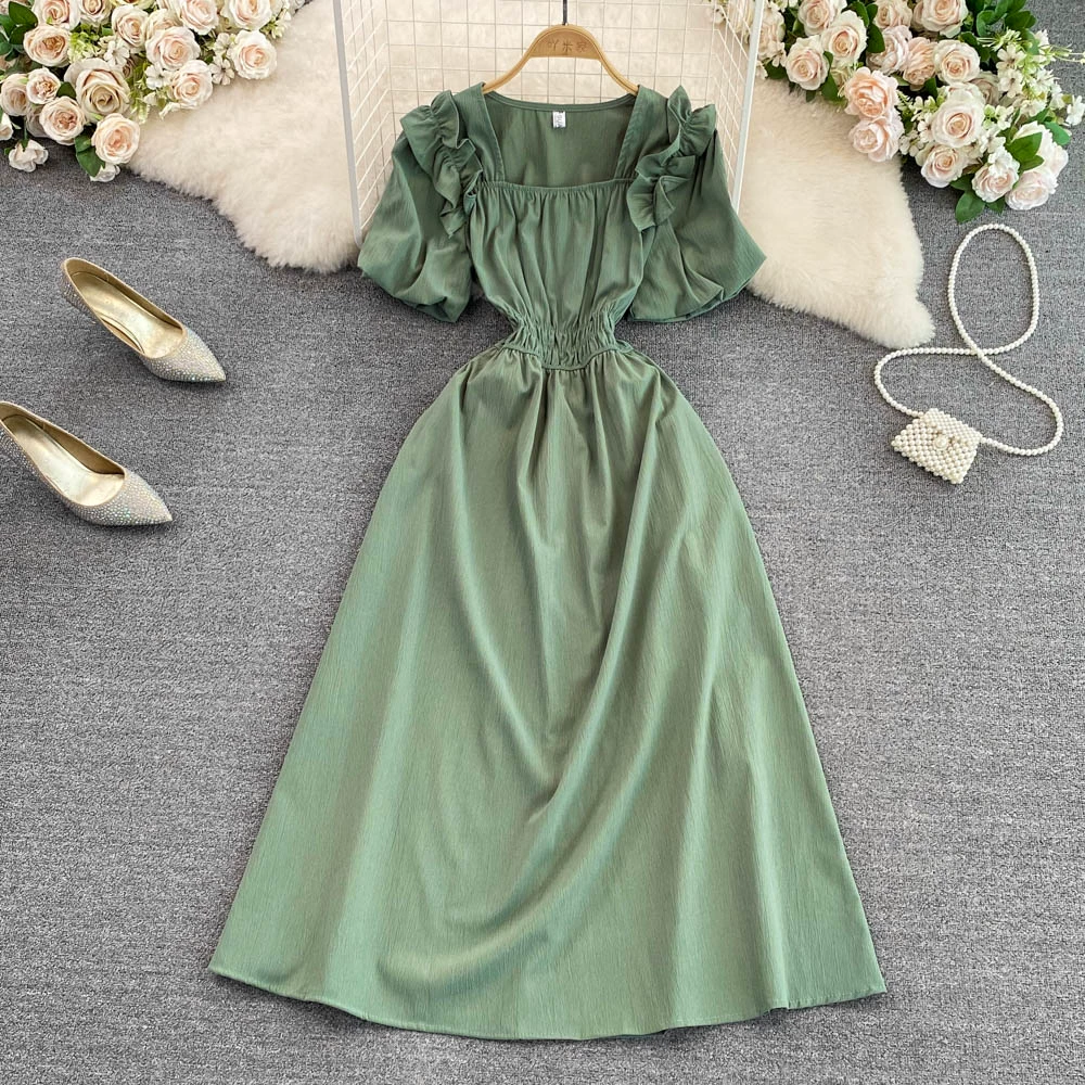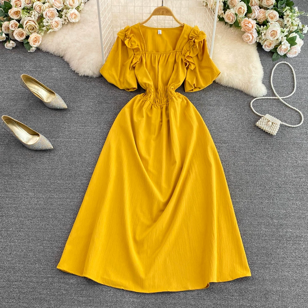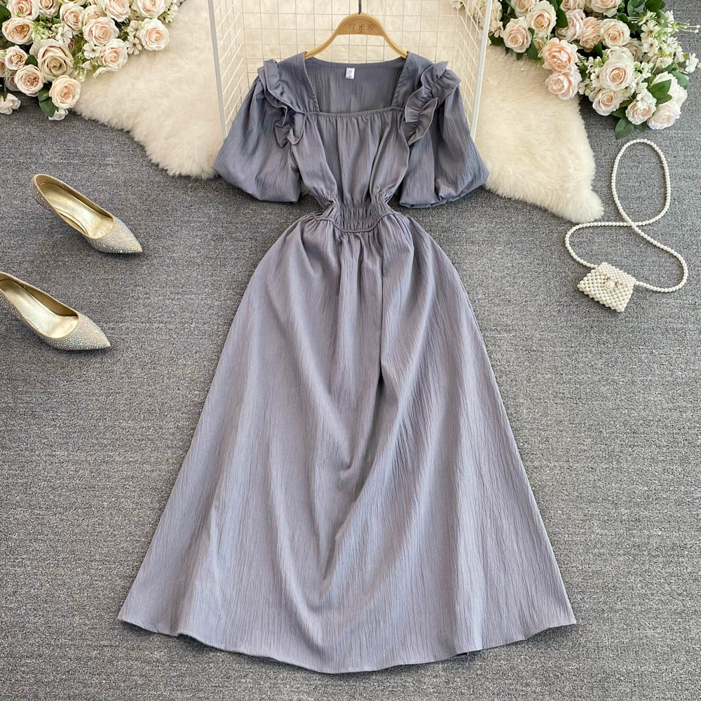 | nameOriginal | Palace-style square-neck bubble dress with elegant short sleeves |