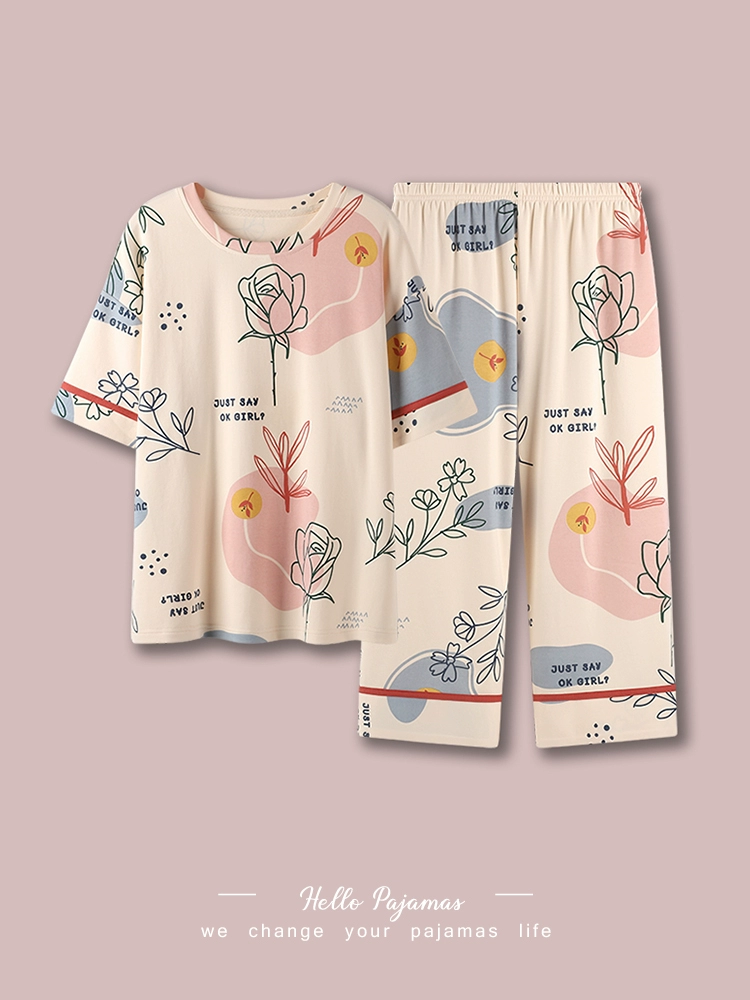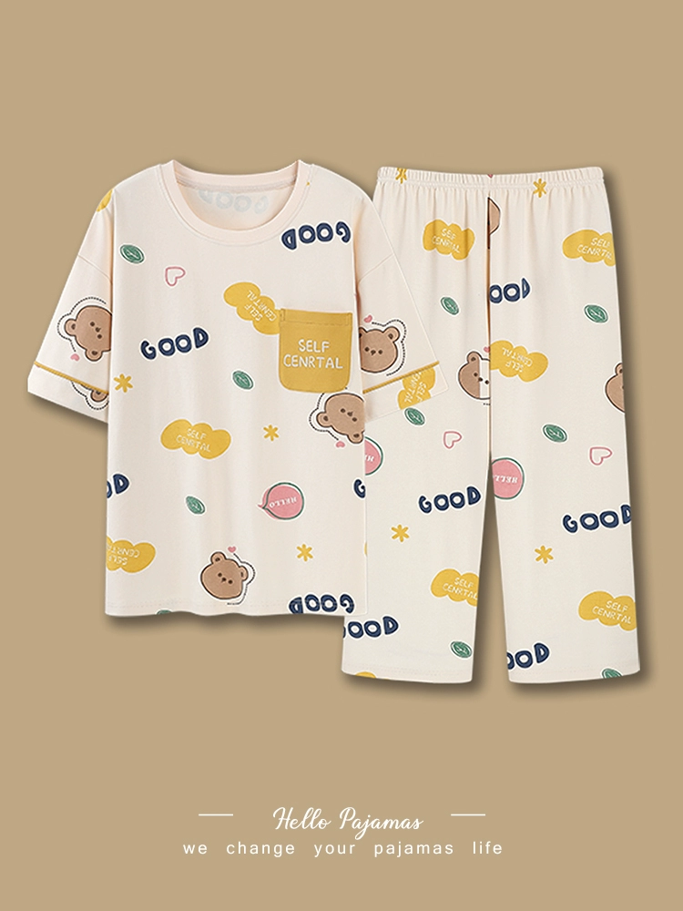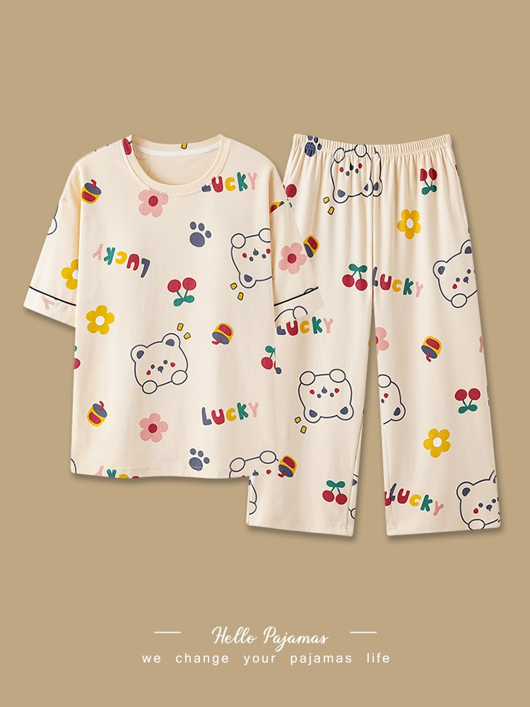 | nameOriginal | Palando pure cotton cropped pants cartoon home wear pajamas |
