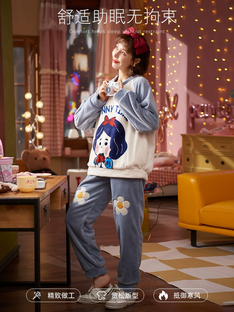 | nameOriginal | Palanduo coral velvet pajamas for women autumn and winter warm thickened velvet cartoon flannel can be worn outside home clothes set |