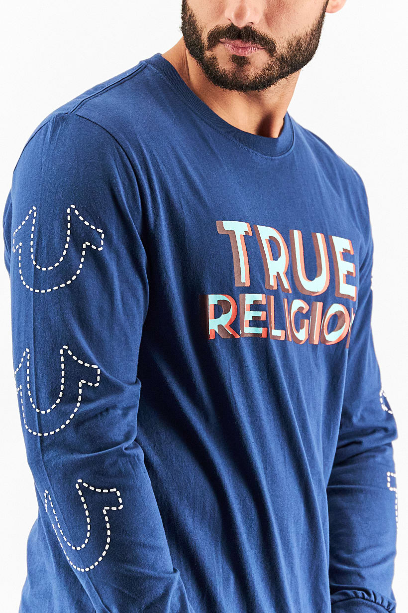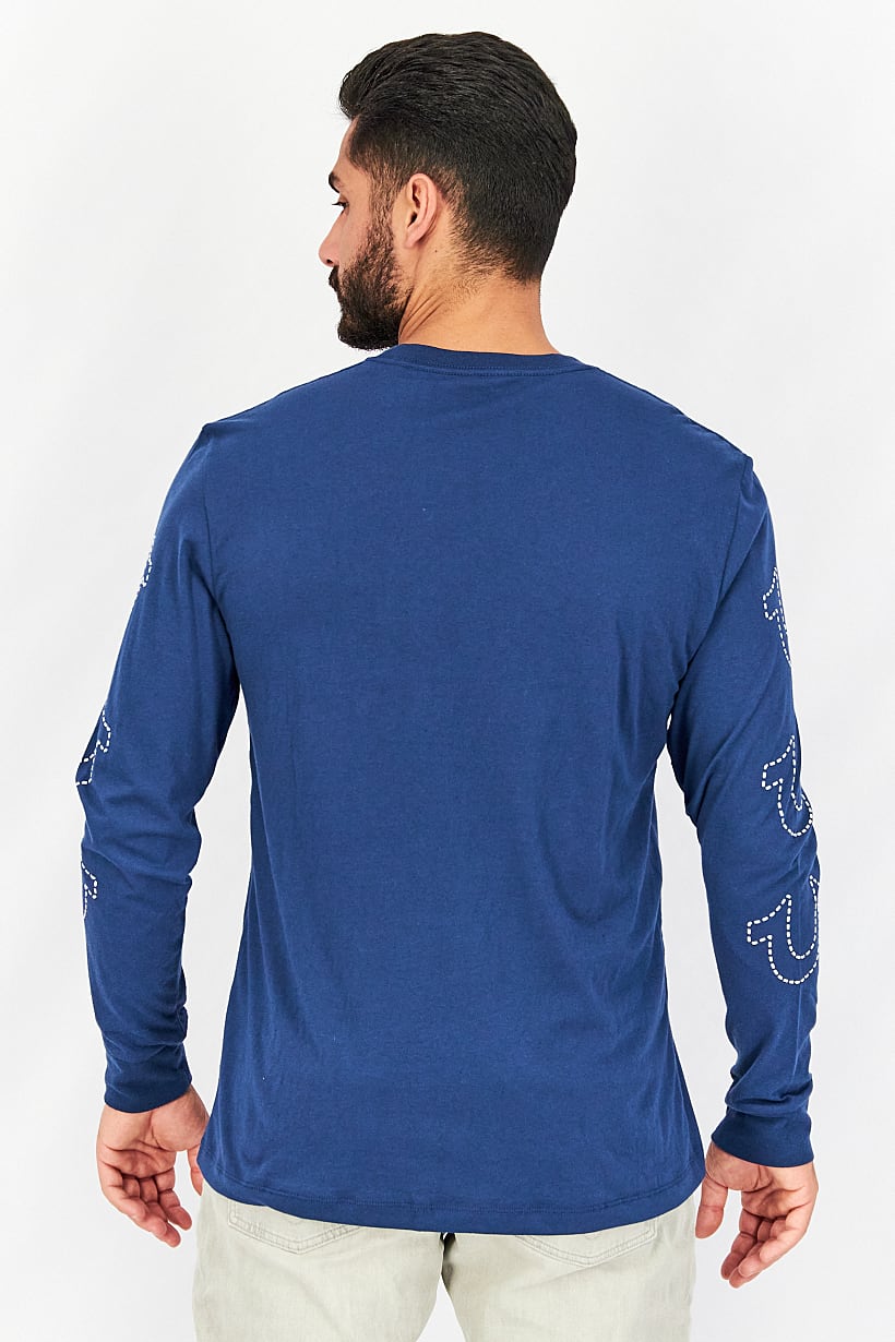 Care : Machine washable, Fit : Regular fit, For Gift : Yes, Ideal For : Men, Size shown : International, Sleeve Length : Long Sleeve, T-Shirt Style : Crew Neck, Types of Hem : Straight hem, Types of Neckline & Collar : Crew neckline, Types of Sleeve : Longsleeve, Disclaimer : Product color may slightly vary due to photographic lighting sources or your monitor settings., Fabrics : 60% Cotton, 40% Polyester, Occasion : Casual, Pattern & Print : Graphic print, Types of Closures : Pullover, Color Family : Navy Blue,