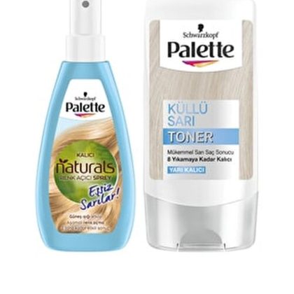 Palette Lasting Natural Colors Color Opening Spray Offers progressive lighting and sunlight effect with its formula containing Argan oil activated by sun and heat activated and caring + Palette Ashy Yellow Toner Perfect Blonde Hair Result.