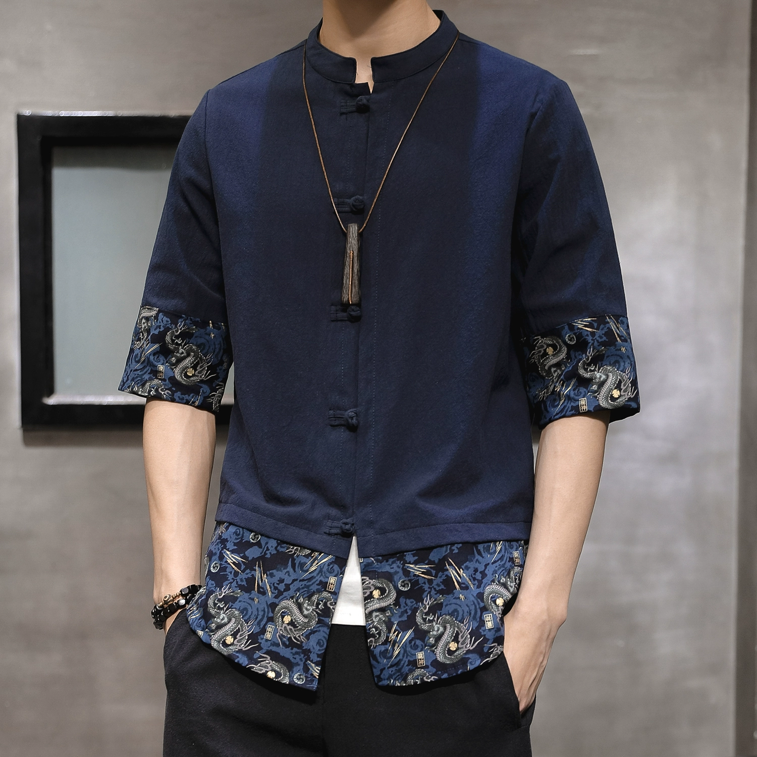 | nameOriginal | Pan-button embroidered Tang suit Chinese style five-quarter sleeve shirt |