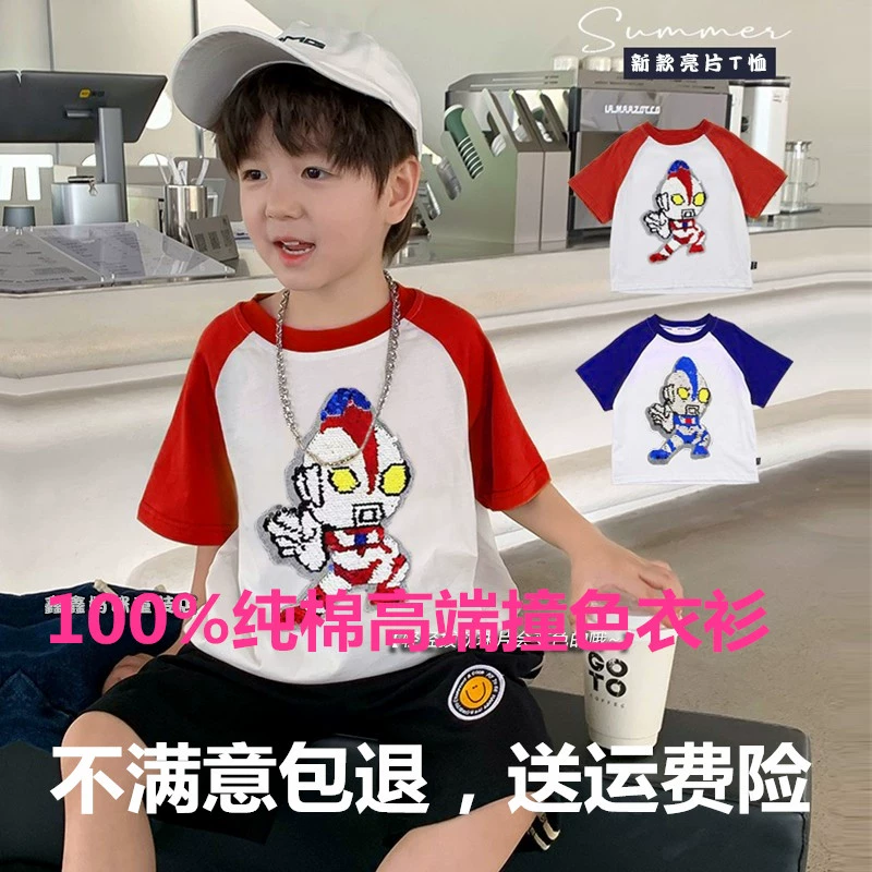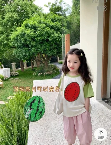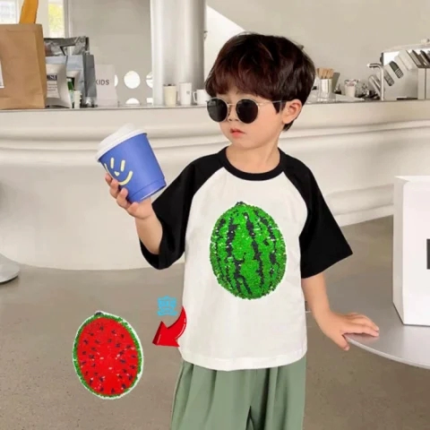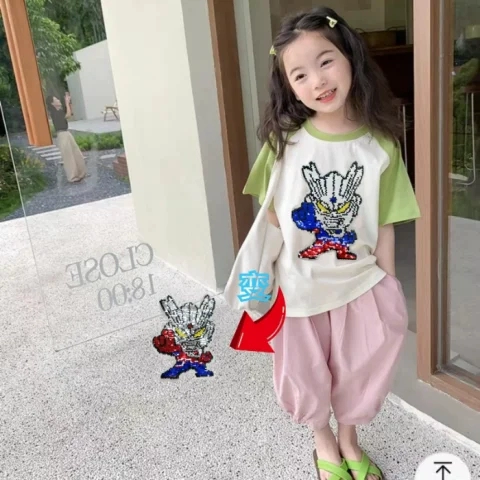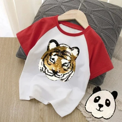 | nameOriginal | Panda children's sequined clothes color changeable tiger short sleeves |