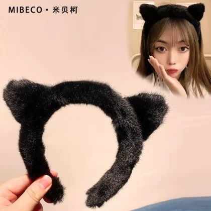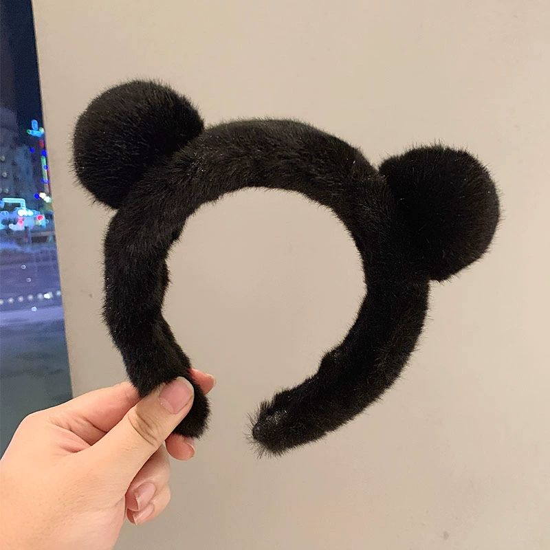 Panda Cute Plush Bear Ears Headband Face Wash Versatile Spring and Summer Headband Mink Hair 2023 New Hair Accessories for Women