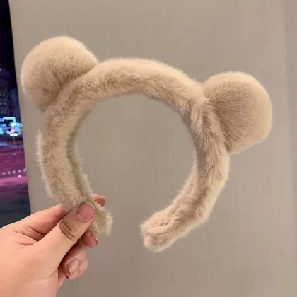 Panda cute plush bear ear headband wash face versatile non-slip headband mink hair 2025 new hairstyle for women