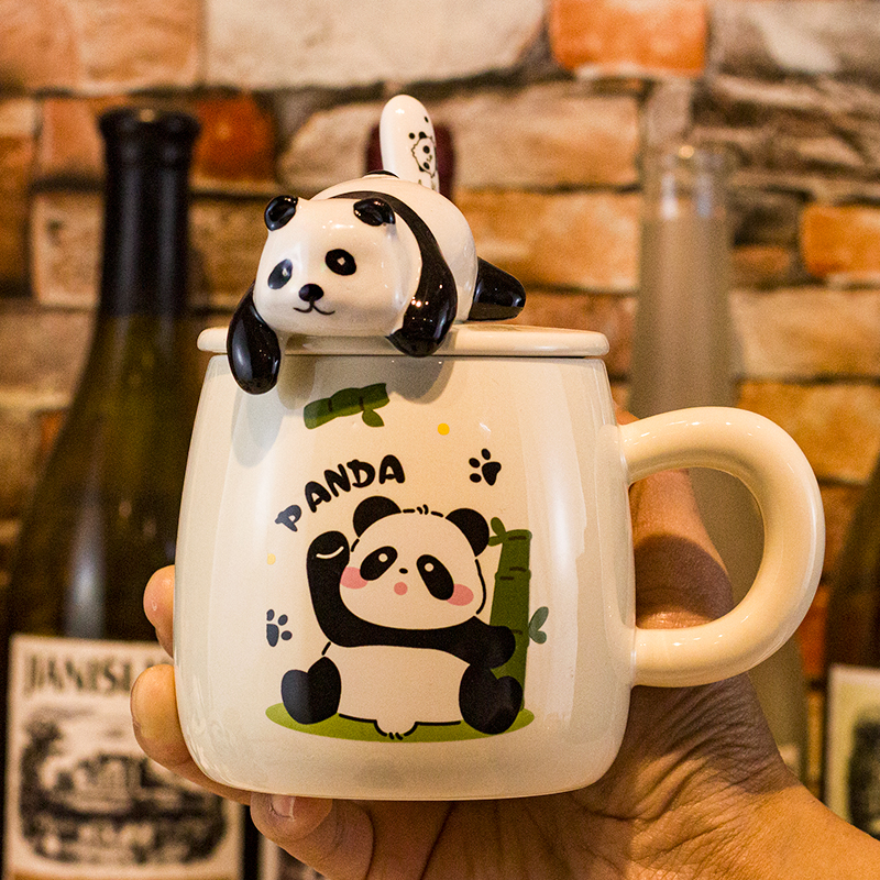 | nameOriginal | # Panda Mug with Lid and Spoon Ceramic Water Cup Girls High-value Children's Cute Birthday Gift New 202 |
