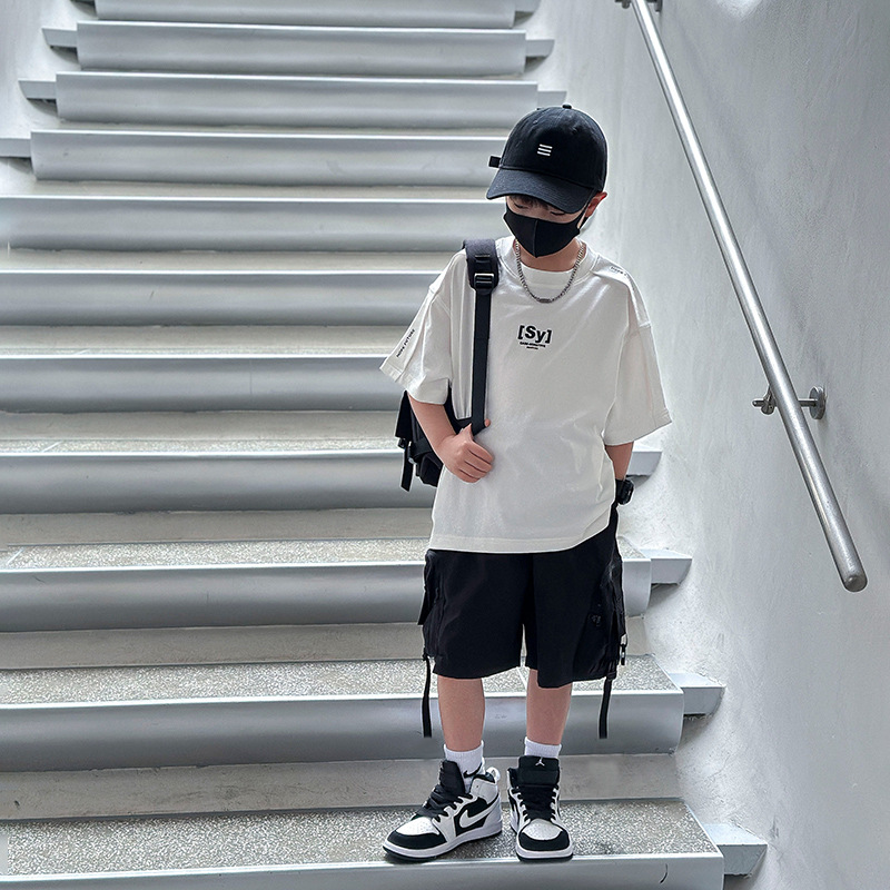 | nameOriginal | Panda round summer boys suit 2024 new children's short-sleeved two-piece set woven children's clothing one-piece delivery |