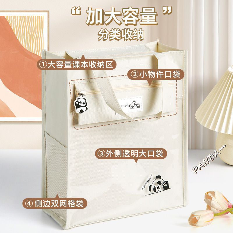 | nameOriginal | Panda tutorial bag transparent portable carrying book bag children's super large capacity canvas tutorial bag homework canvas art bag |