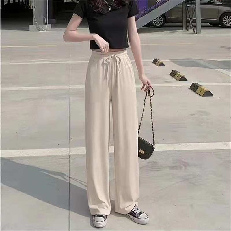 | nameOriginal | Pants Autumn Toothpick Strip Ice Silk Wide-leg Pants Summer Women's Pants Thin Drawstring Straight Pants High Waist Casual Pants |