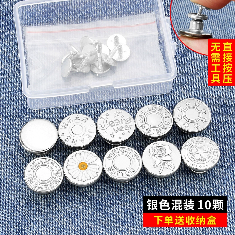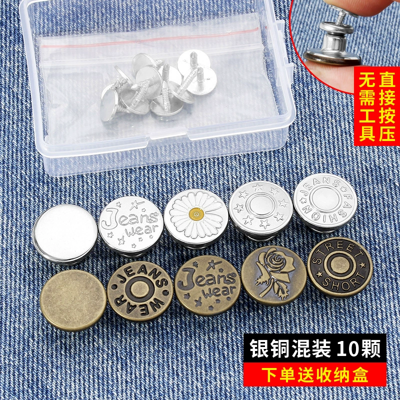 Pants waist buttons, no punching, no nails, jeans waist size can be changed to smaller buttons, nails can be tightened, artifact accessories