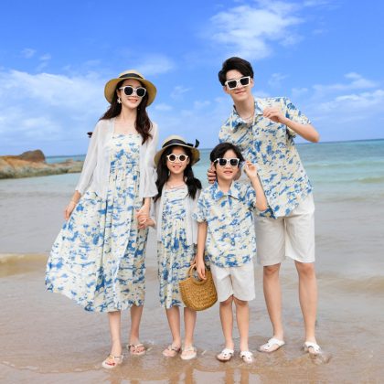 | nameOriginal | Parcel Dress Sanya Beach Seaside Travel Vacation Floral Hong Kong Style Shirt Bohemian Mother and Daughter Sling dress |
