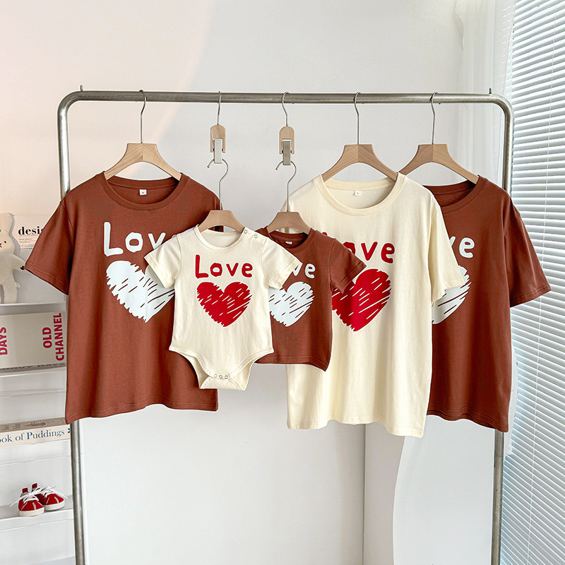 | nameOriginal | Parent-child 2024 summer new family of three four love short sleeve t-shirt foreign-style mother and daughter baby photo |