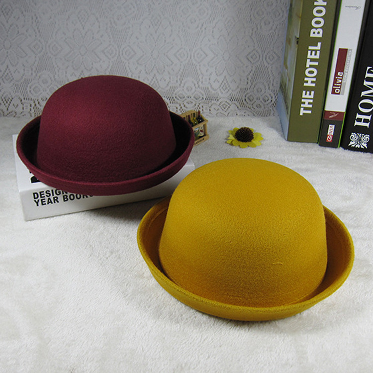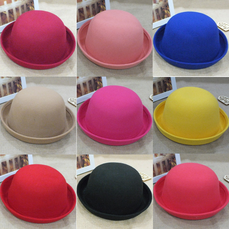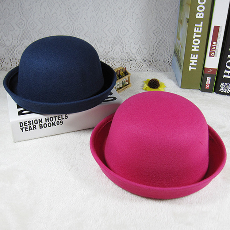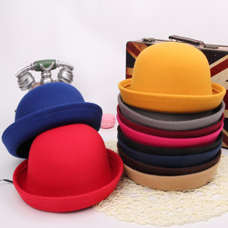 Parent-Child Bowler Hat Spring Summer Autumn Baby Boys and Girls British Woolen Hat Tide Children Candy Color Basin Hat