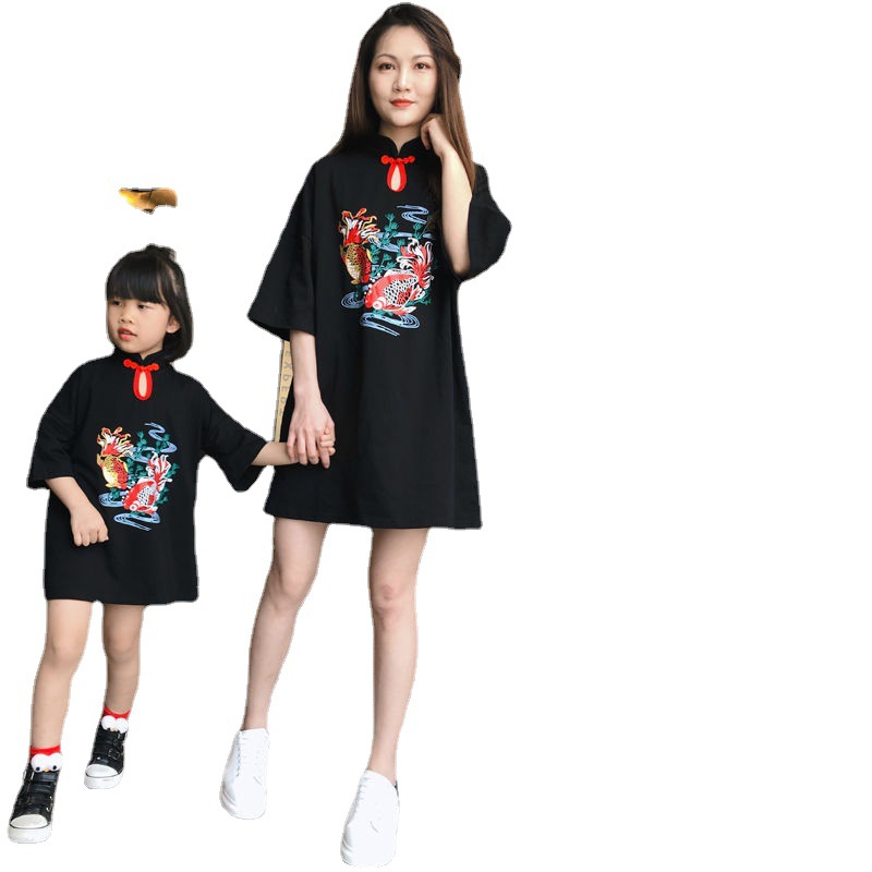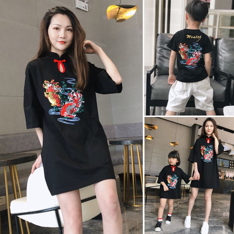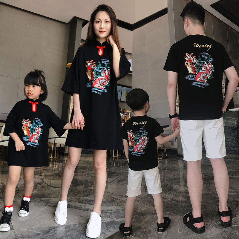 | nameOriginal | Parent-child cheongsam for a family of three and four Chinese style fashionable high-end Internet celebrity summer T-shirt |
