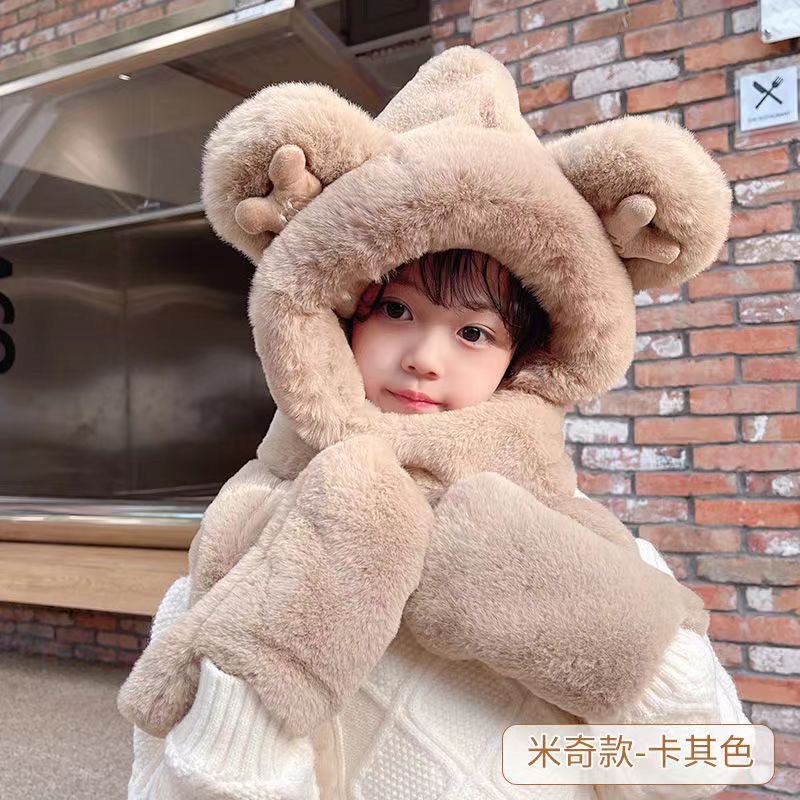 | nameOriginal | Parent-Child children adult cute bear ears hat scarf gloves integrated three-piece warm thickened plush hat |