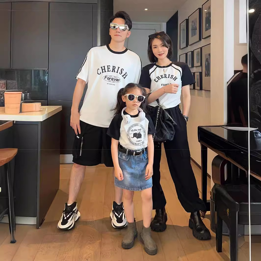 | nameOriginal | Parent-Child clothing summer 2023 family of three four high-end mother and son father-daughter mother and women's clothing foreign-style high-end short-sleeved T-shirt |