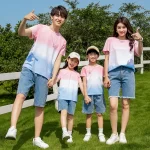 Parent -child installation summer 2024 new family, a three -family mother, mother and child T -shirt suit, four -mouth summer high -end family