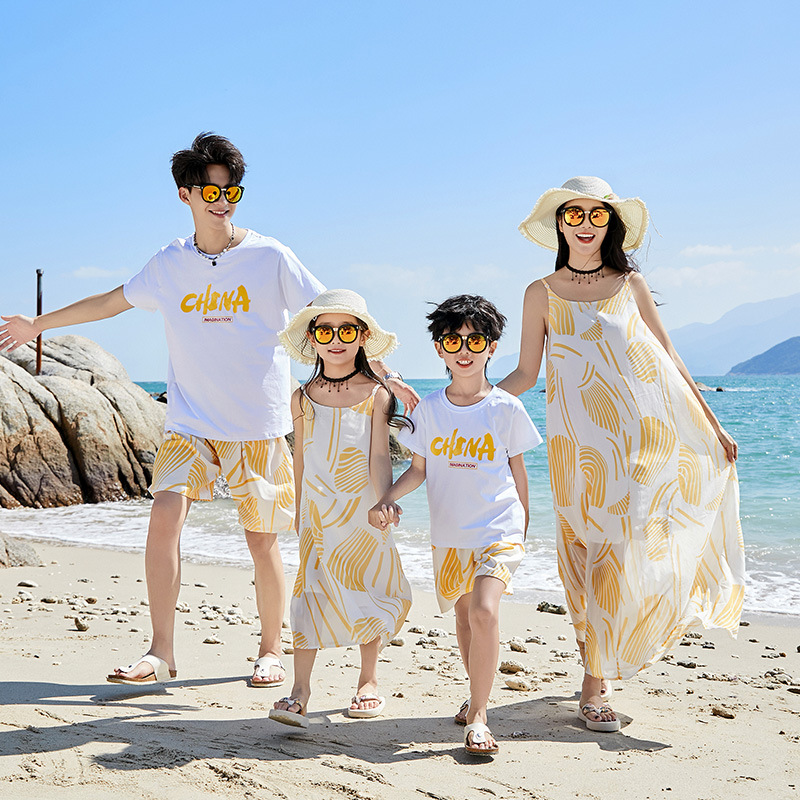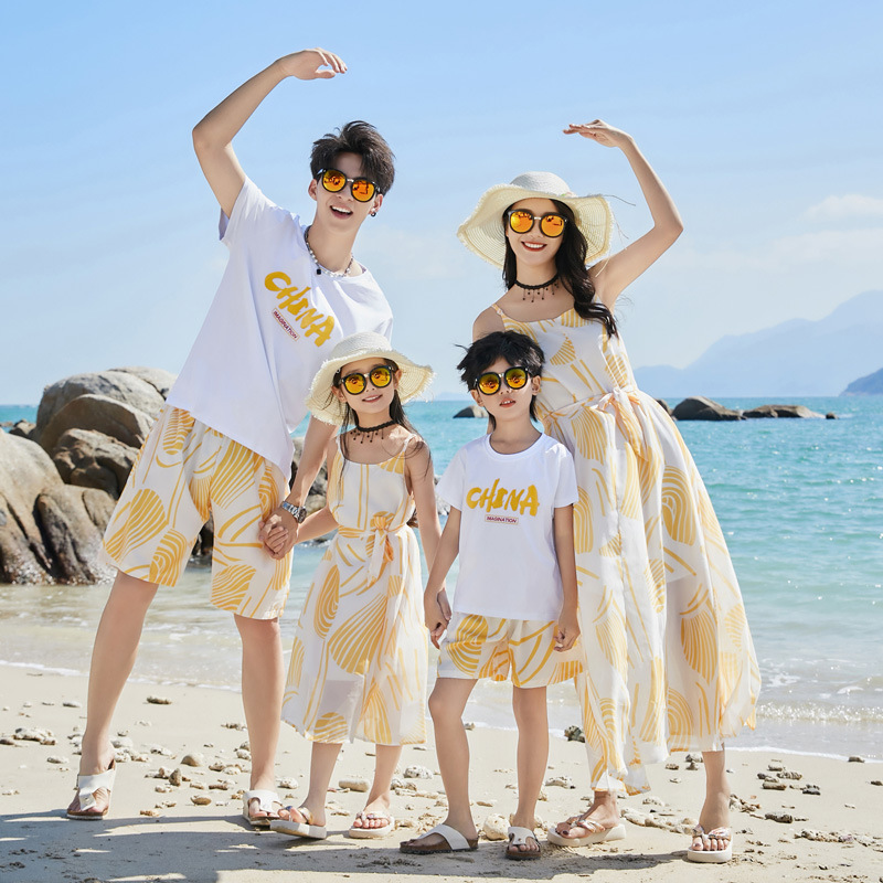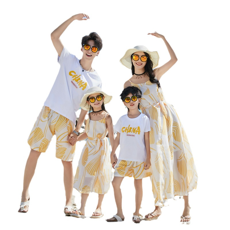 | nameOriginal | Parent-Child clothing summer family three or four full home decoration seaside vacation mother and daughter bohemian beach sling dress |