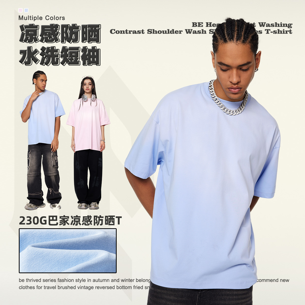 Parent-child clothing, tide brand cool feeling fabric gradient short-sleeved shirt European and American sports foreign trade for parent-child shirt