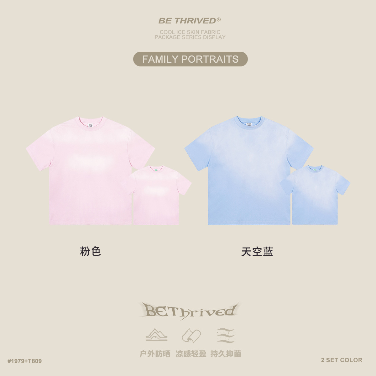 Parent-child clothing | tide brand cool feeling fabric gradient short-sleeved shirt European and American sports foreign trade for parent-child shirt