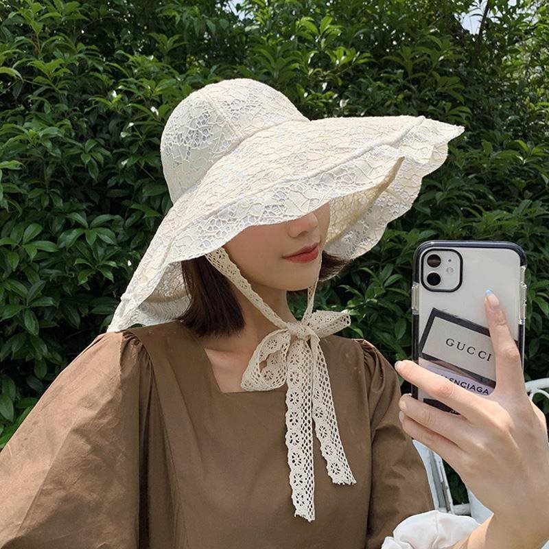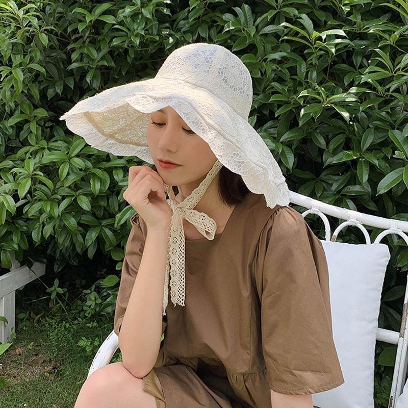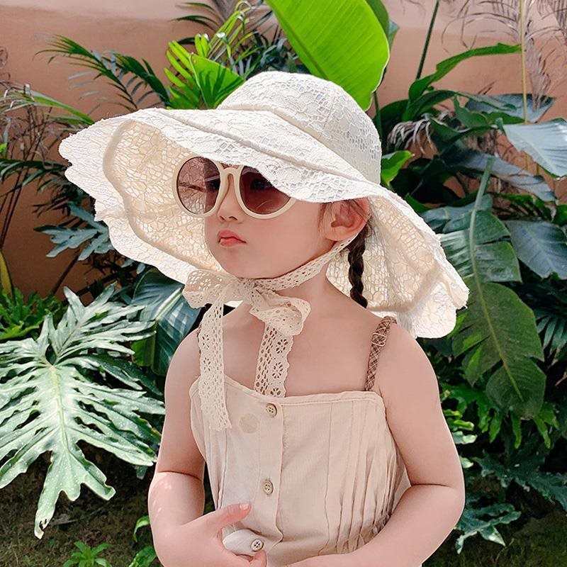 Parent-Child Lace Bow Children's Fisherman Hat Girls' Summer Sunshade Hat Breathable Beach Sun Basin Hat