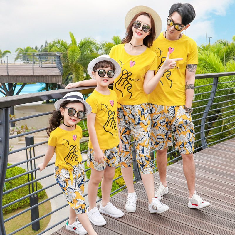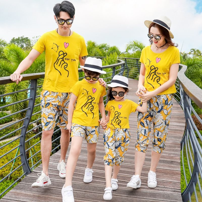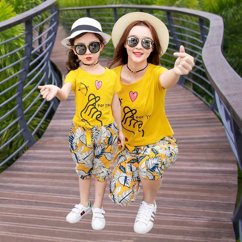 | nameOriginal | Parent-child summer plus fat plus size family of three four leisure travel T-shirt mother and daughter cropped pants suit tide |