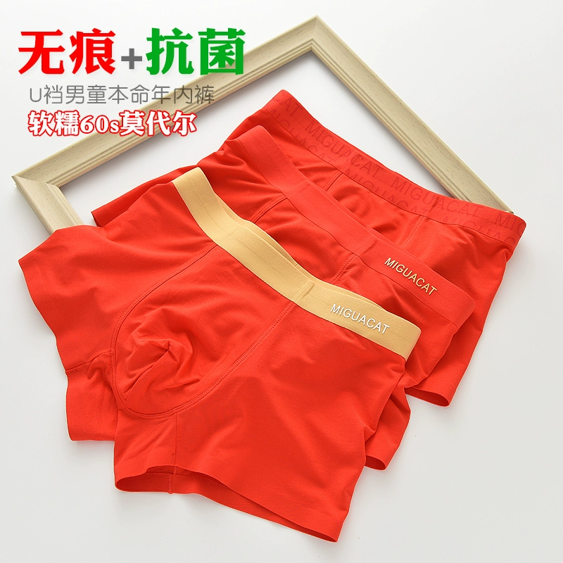 | nameOriginal | Parent-child u-crotch zodiac year red boys' underwear boxer modal seamless youth shorts antibacterial 12 years old |