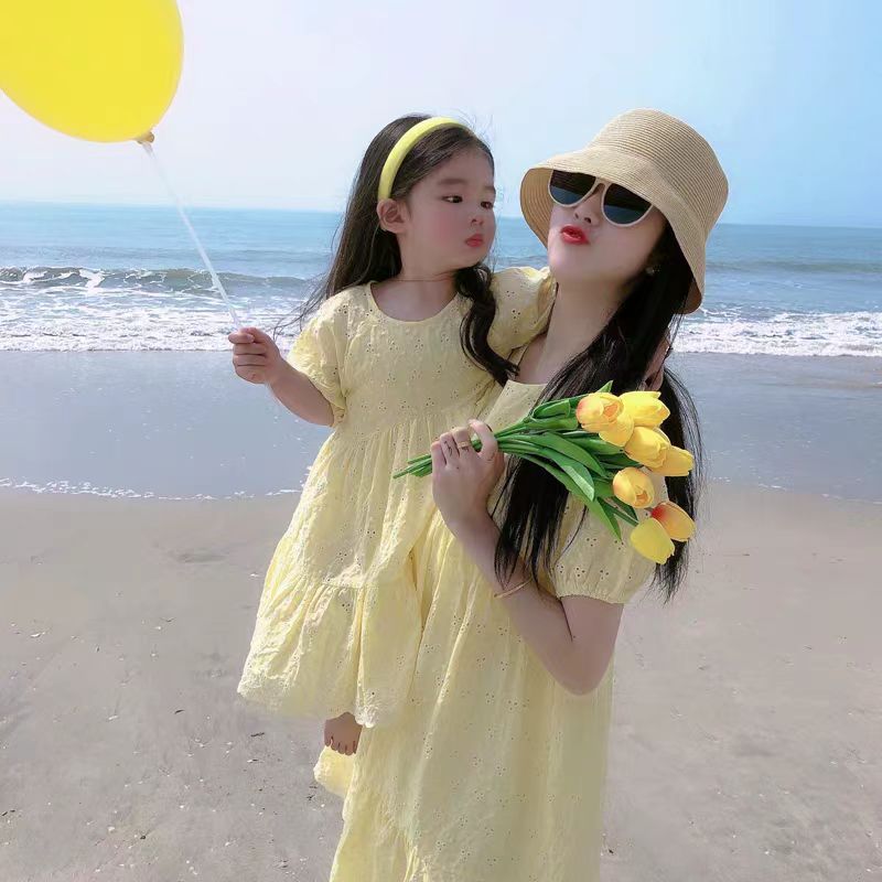 | nameOriginal | Parental Short-sleeved Dress 2024 Summer New High-end Embroidered Hollow Cotton Mid-length Mother and Women's Dress |