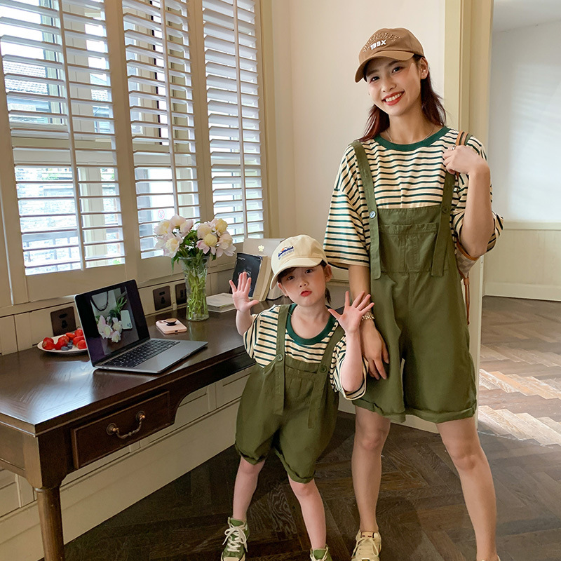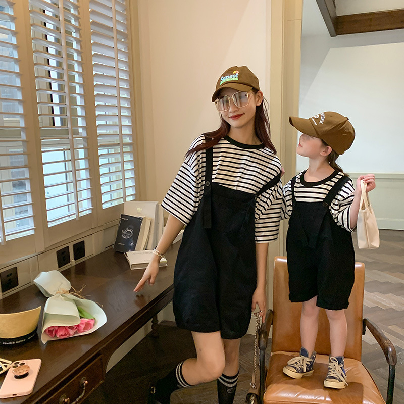| nameOriginal | Parin-child striped short sleeve suspenders two-piece 2023 Korean mother and daughter girls denim suit a generation of hair |