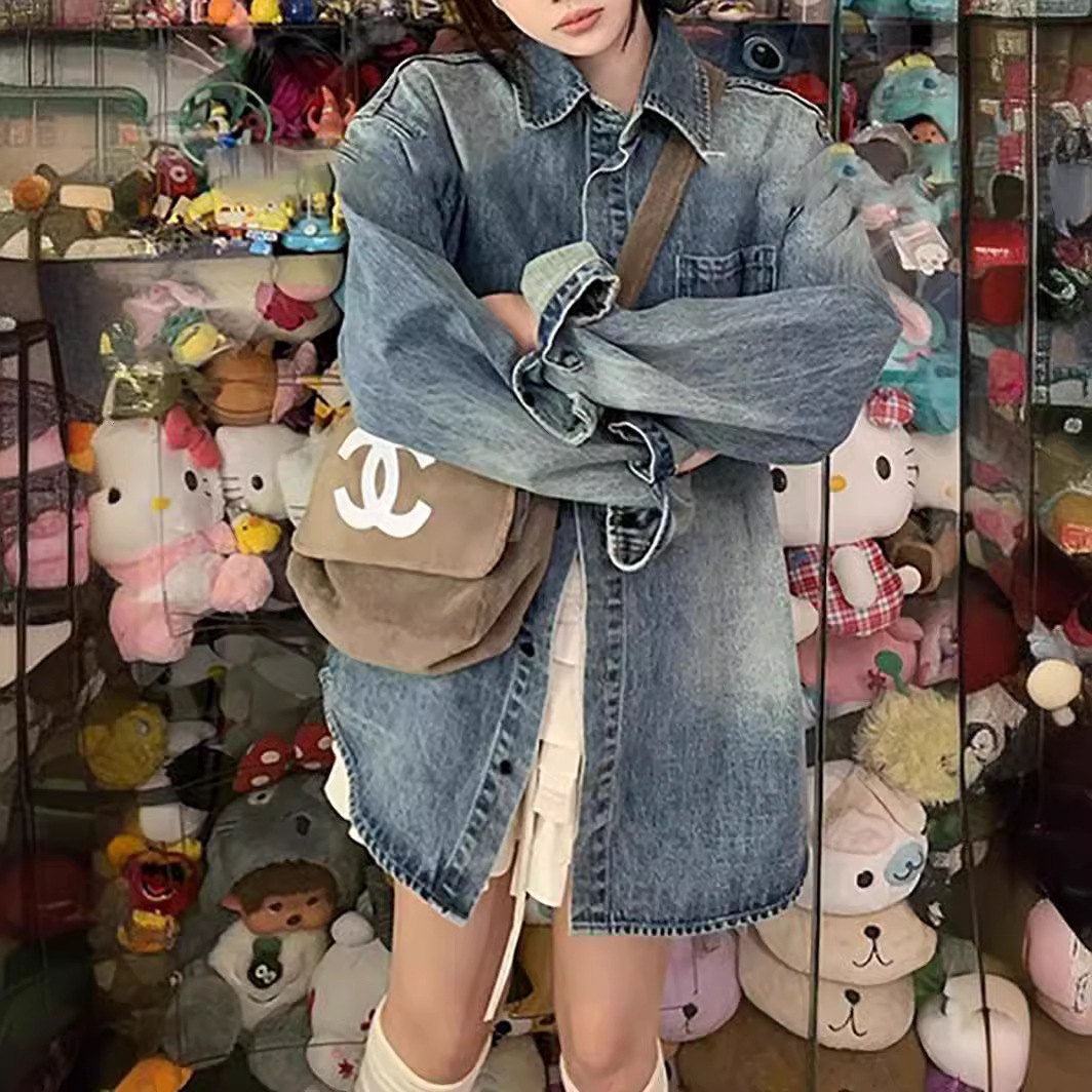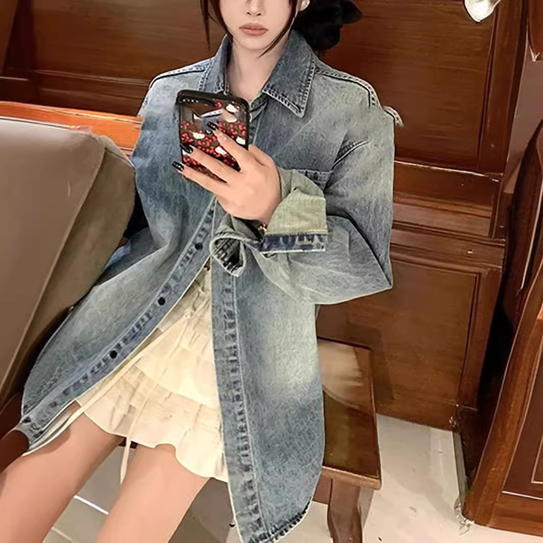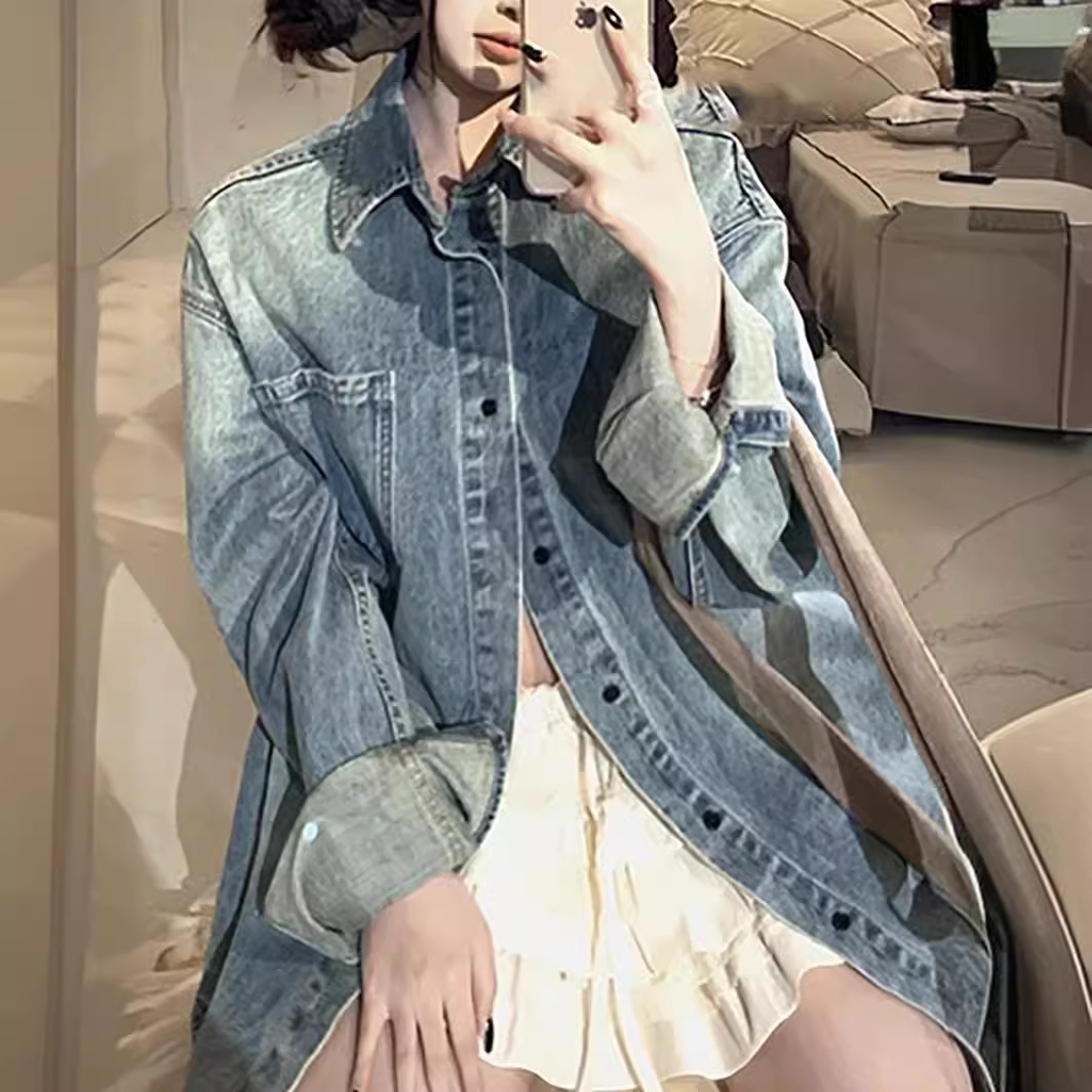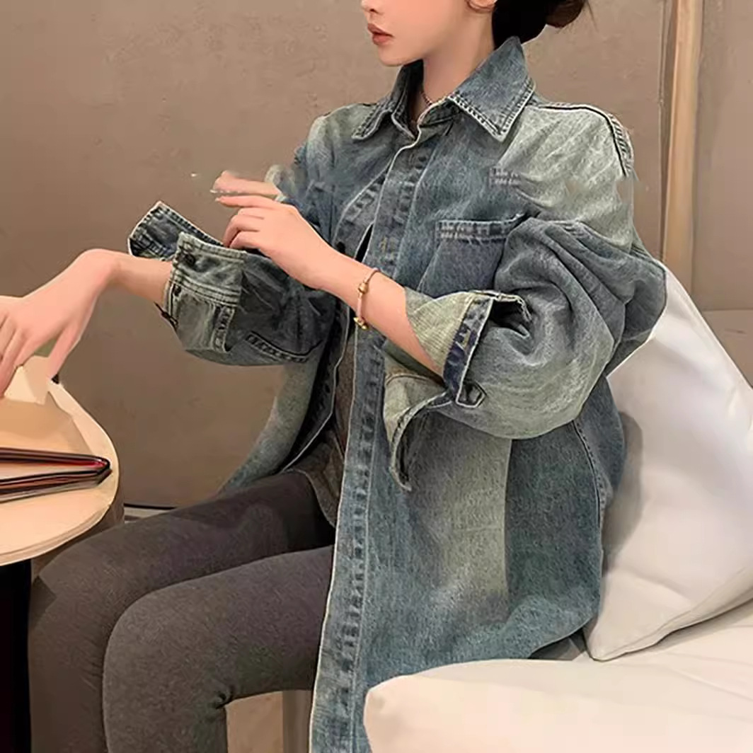 | nameOriginal | Paris accent water-washed blue Denim shirt coat women's spring small lapel lazy single-breasted top |