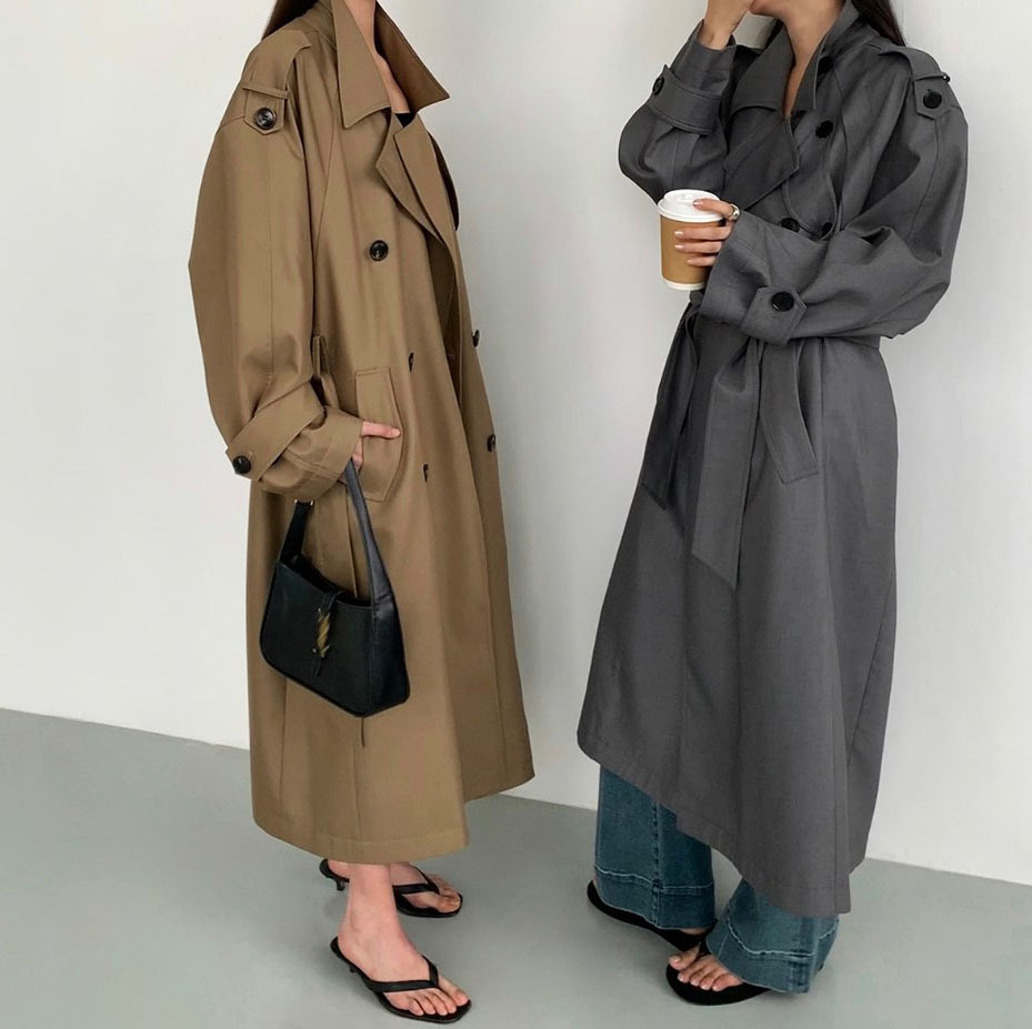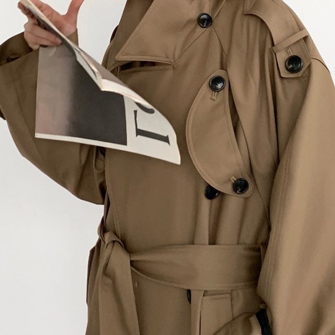 Paris old dream classic profile large lapel double-breasted mid-length elegant niche slimming gentle trench coat for women