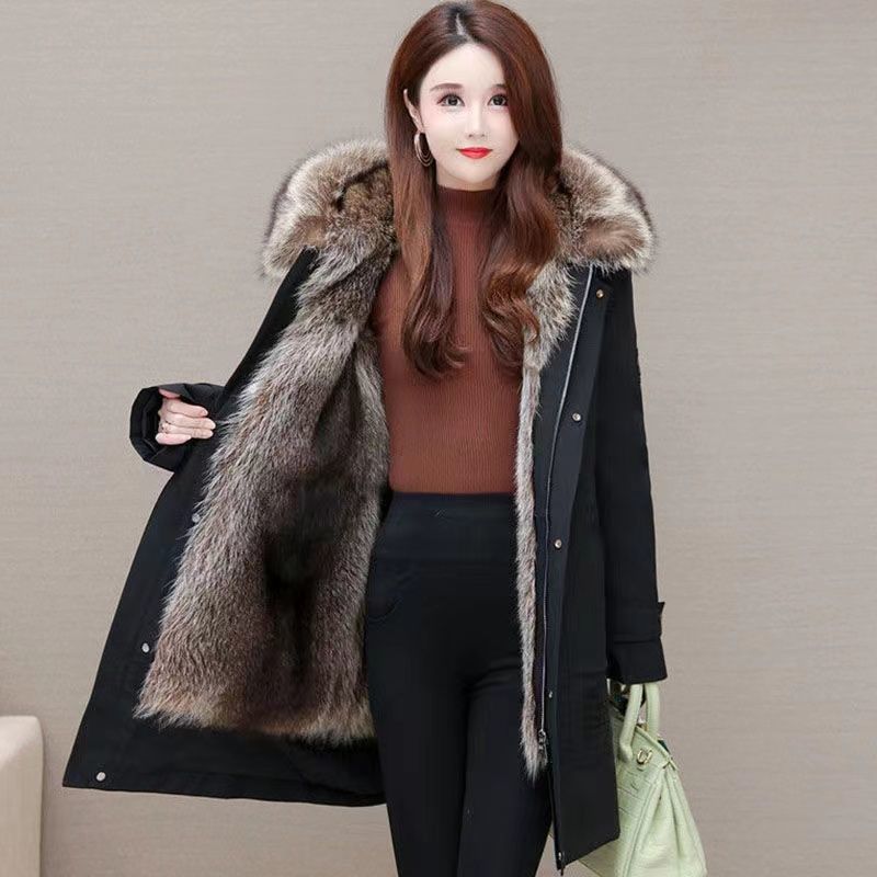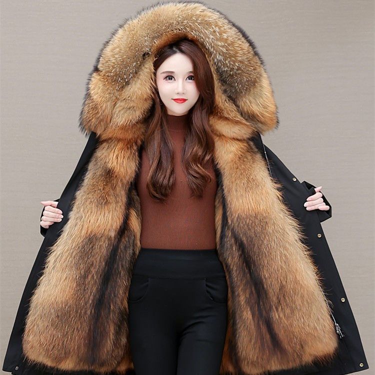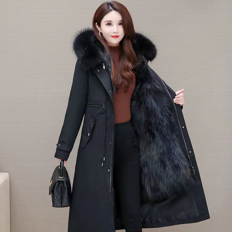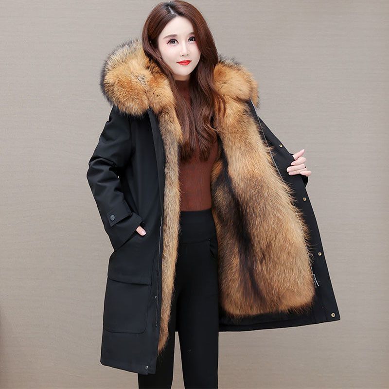 Parka women’s 2023 new fox fur detachable liner fur integrated mid-length thickened fur coat imitation