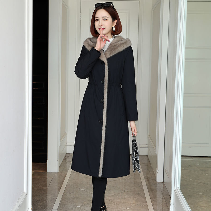 Parka women’s 2023 new winter mink liner detachable Rex rabbit fur long fur coat