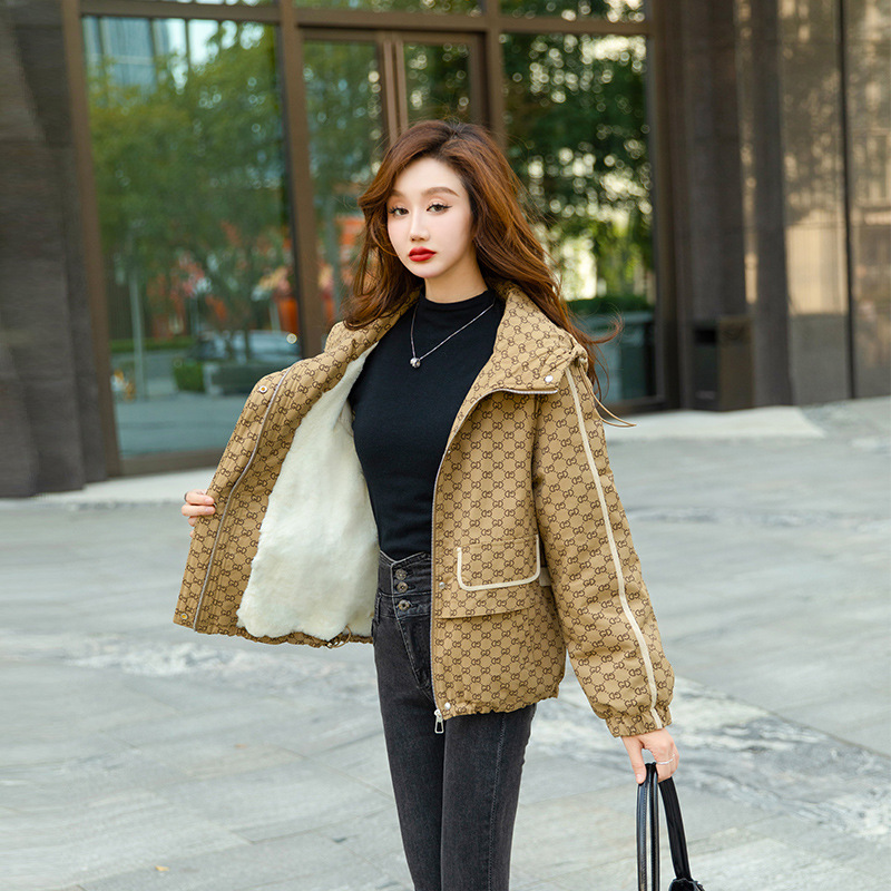 Parker Clothing Women’s 2023 New Winter Coat Plus Velvet Cotton-padded Jacket Short Explosions Thick Small Man Tooling Cotton-padded Jacket