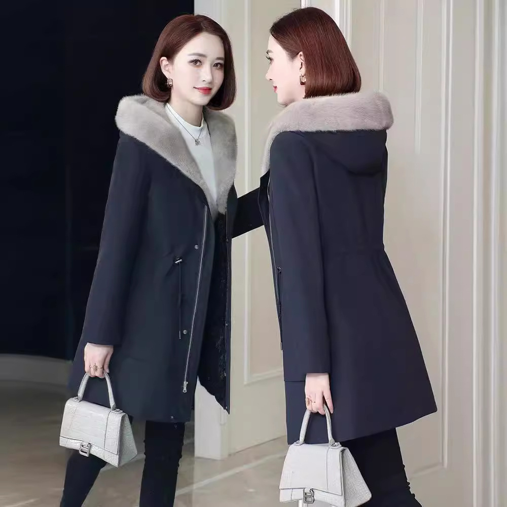 | nameOriginal | Parker Clothing Women's 2024 Winter New Slim-fit Mink Inner Urchin Detachable Haining Fur Jacket Nie Overcome Mid-length |