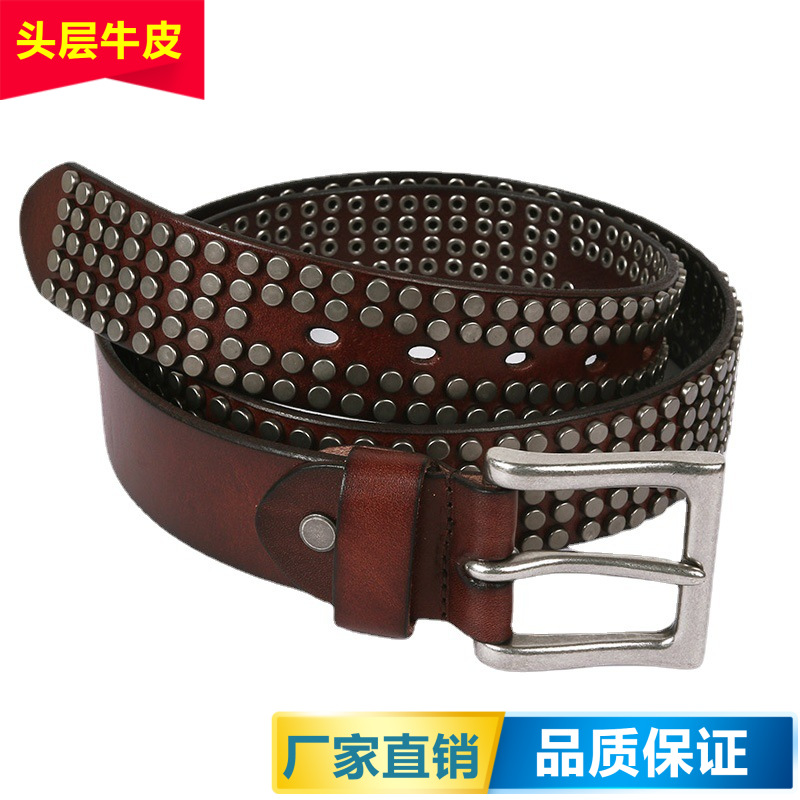 | nameOriginal | Parker Cool Poetry Genuine Leather Round Rivet Wide Belt Men's and Women's Personality Heavy Industry Punk Top Layer Cowhide Neutral Belt |