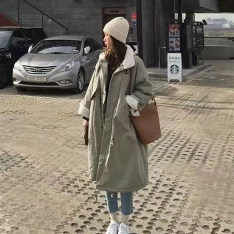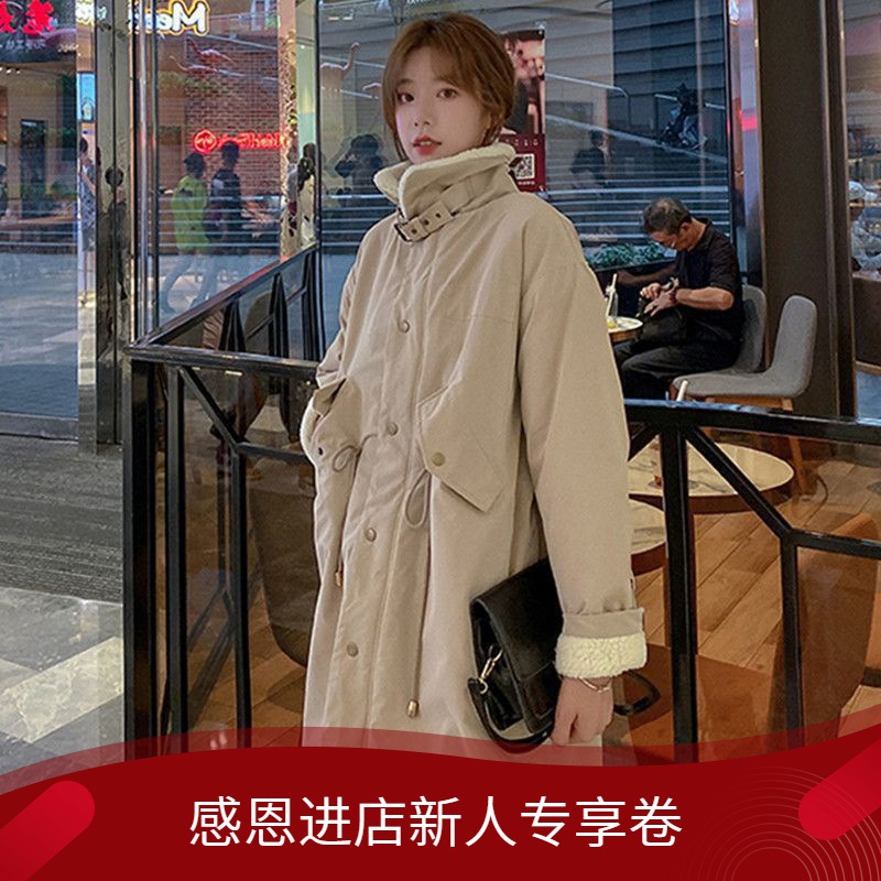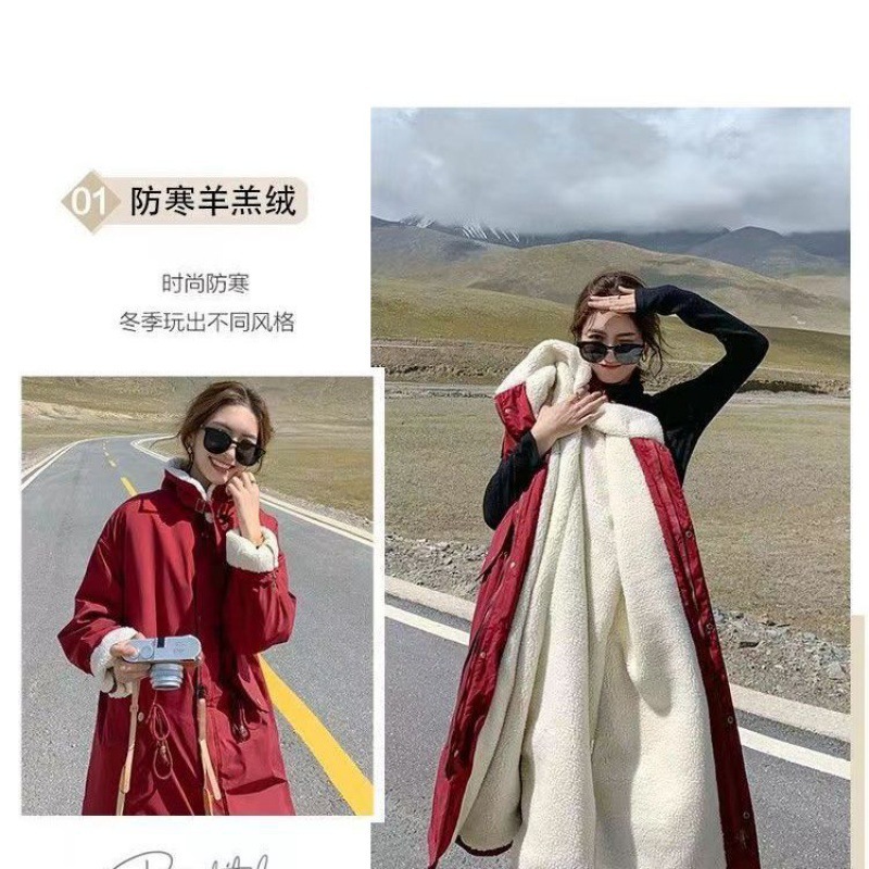 Parker Women's Middle and Long plus size Chubby Cotton Coat Winter Thickened Warm Cotton Coat Lamb Wool Overcoat Yx