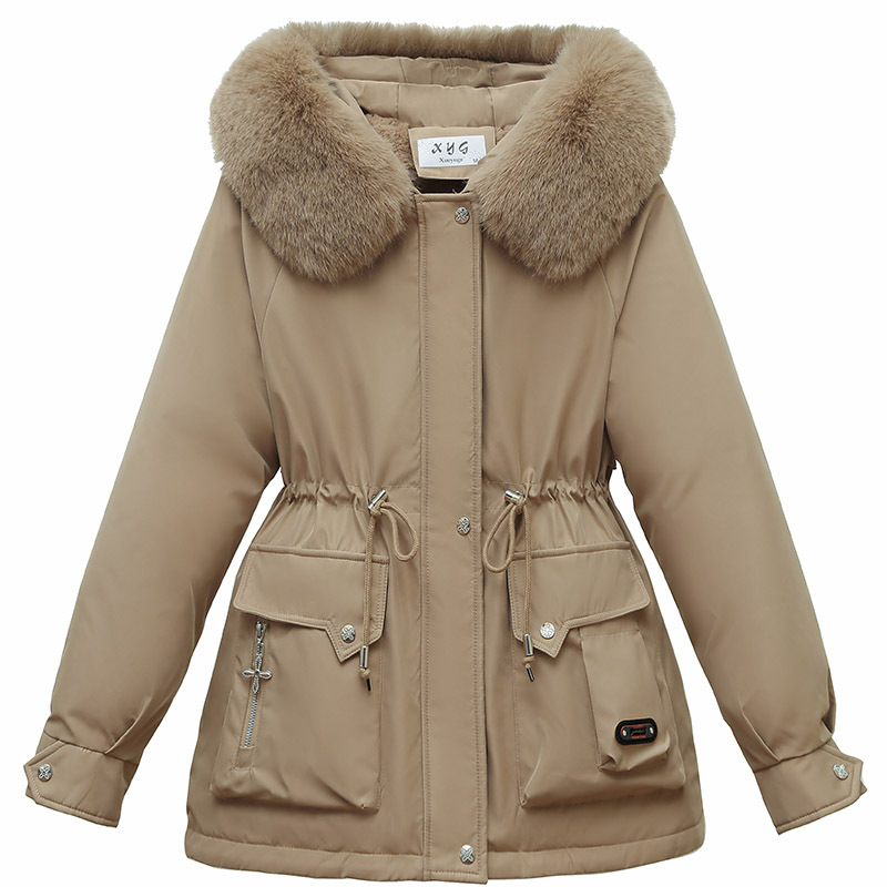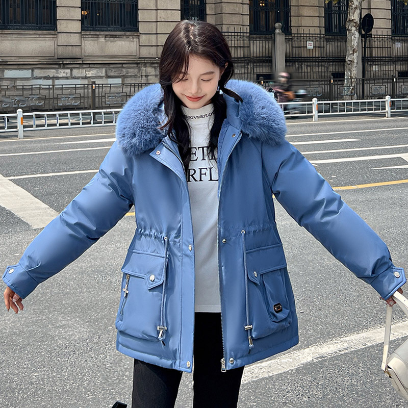Parker Women’s Winter 2024 New fleece-lined Thickened Down Cotton Clothing Large Pocket Loose Cotton-padded Jacket Waist Tight Coat Trendy