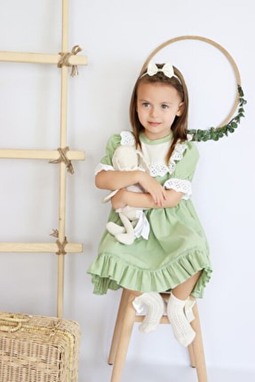 | nameOriginal | Parla Kids Girls' Green Ruby Ruby Ruffled Lace Detailed Short Sleeve Dress Bandana Suit |