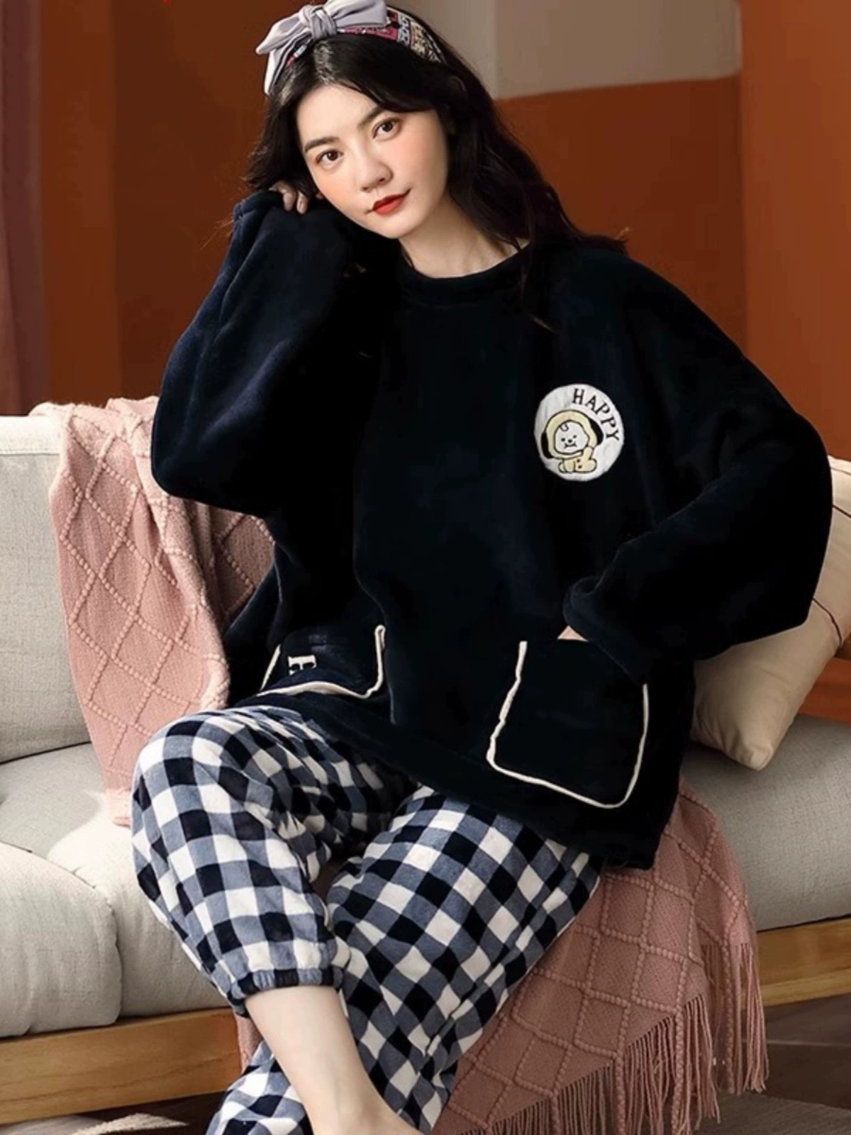 | nameOriginal | Parlando flannel pajamas for women in autumn and winter, thickened and velvet, cute coral velvet, warm winter home wear pullover |