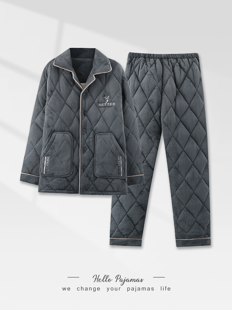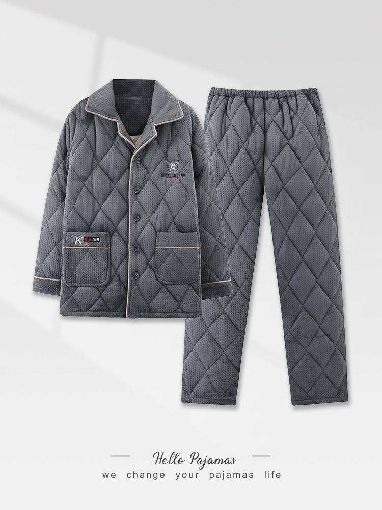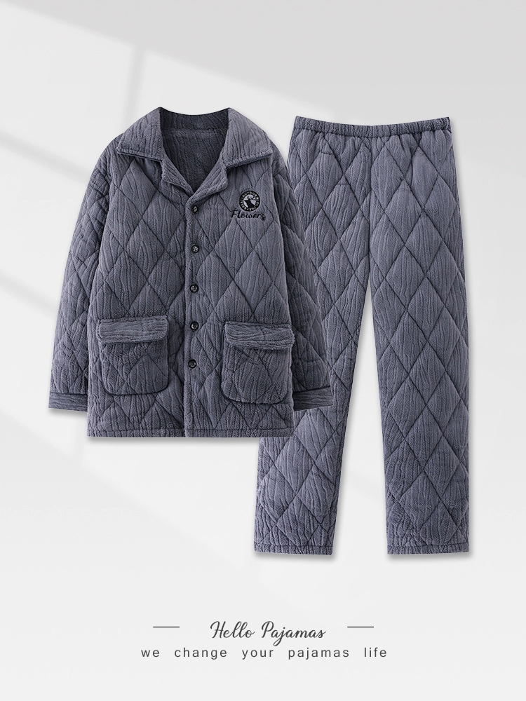| nameOriginal | Parlando pajamas for men winter 2024 new thickened plus velvet coral velvet warm three-layer quilted home clothes set |