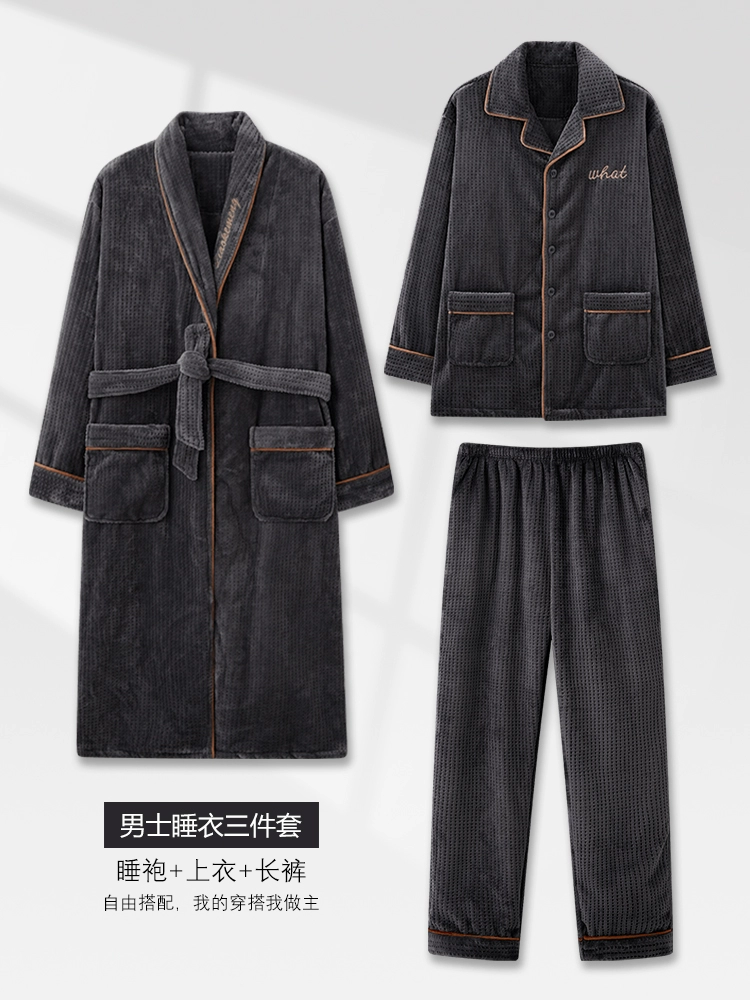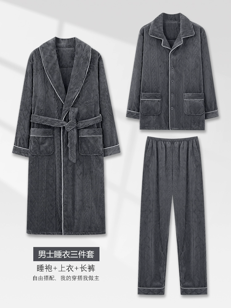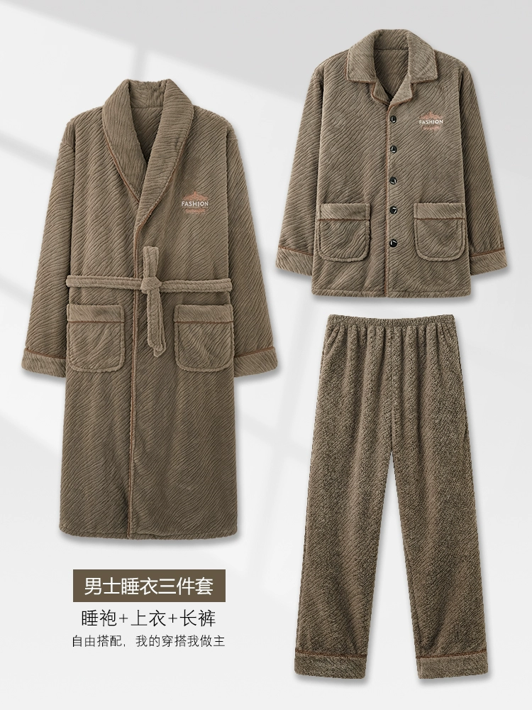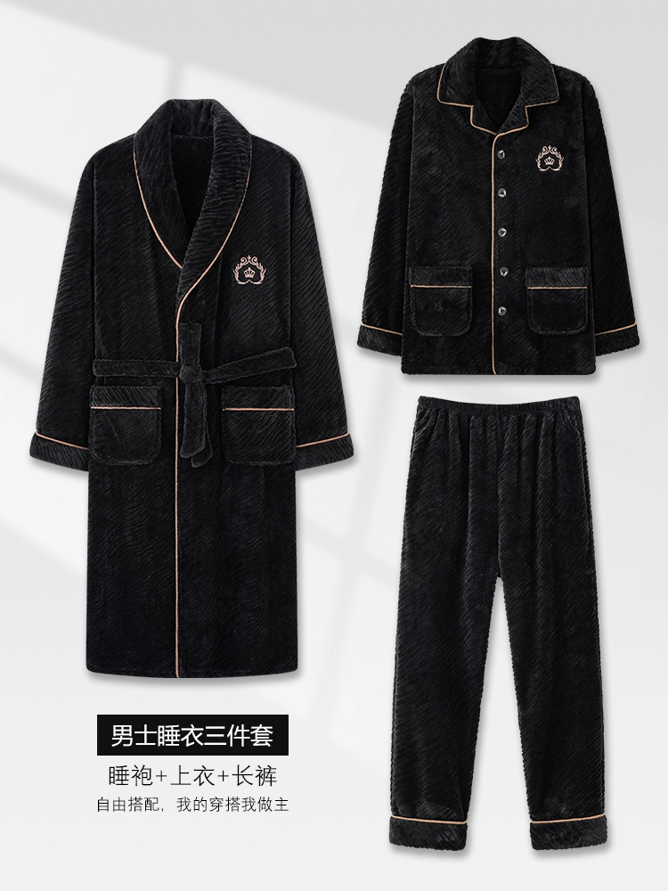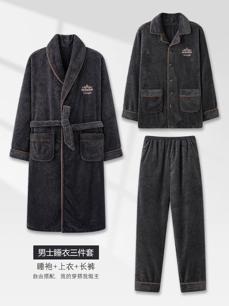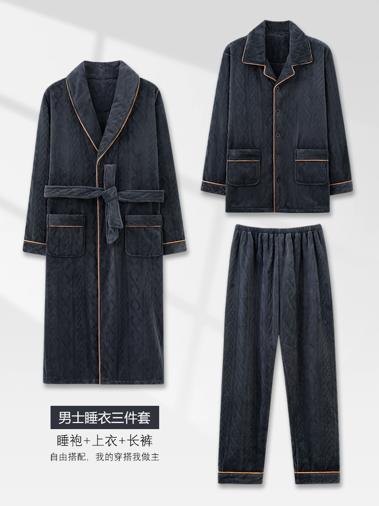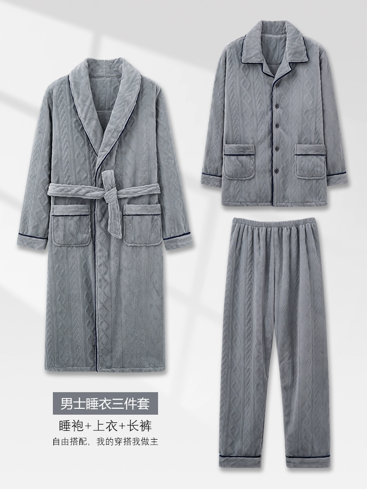 Parlando three-piece pajamas for men, autumn and winter coral velvet thickened plus velvet pajamas, winter plus size home clothes