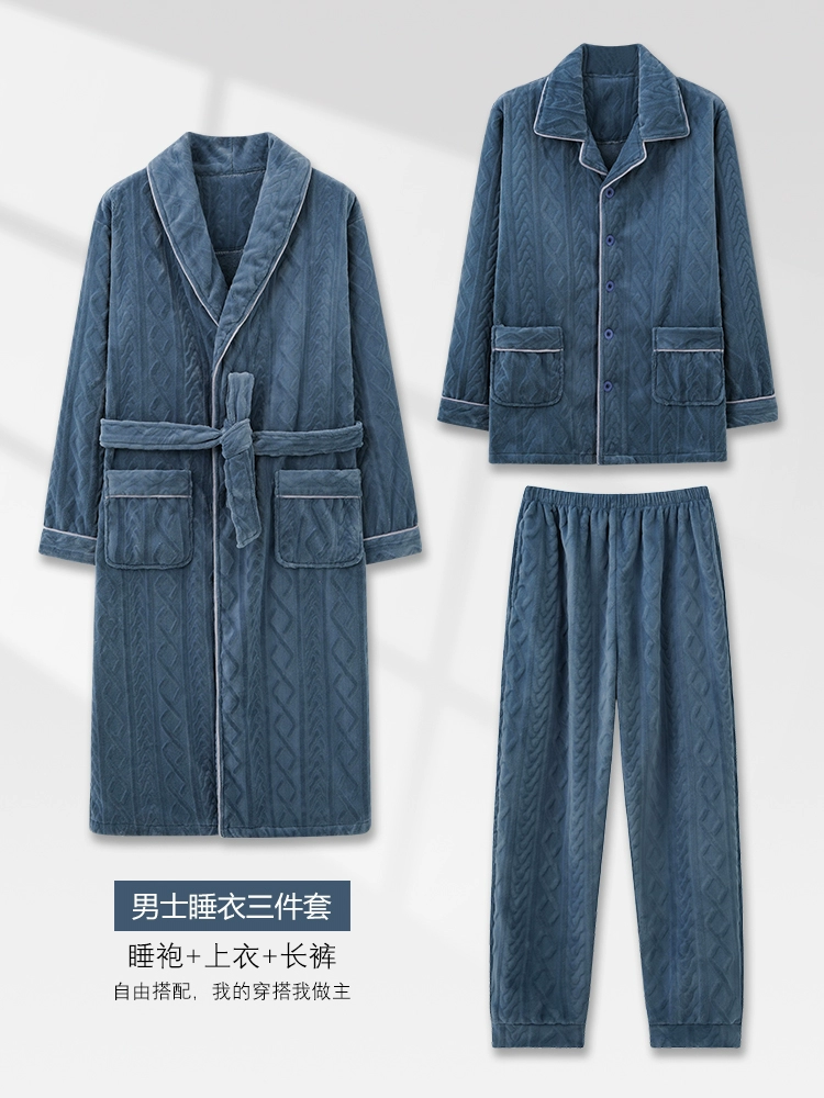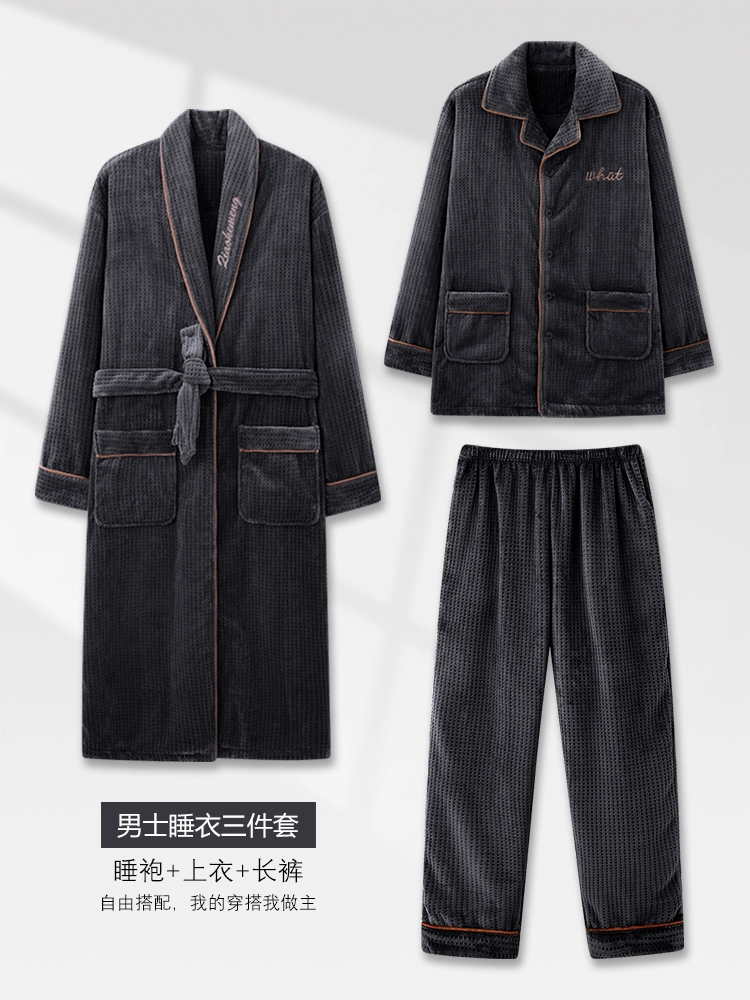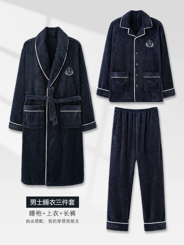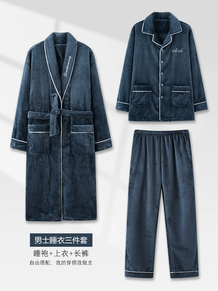 Palan Dot three -piece pajamas men’s autumn and winter coral velvet thick velvet, winter robe winter large size home service