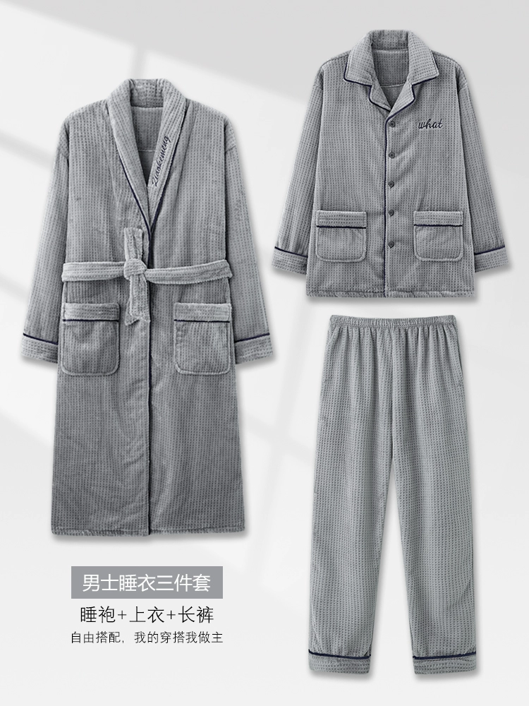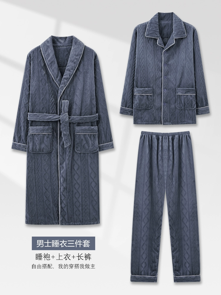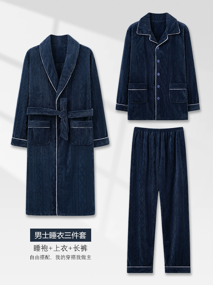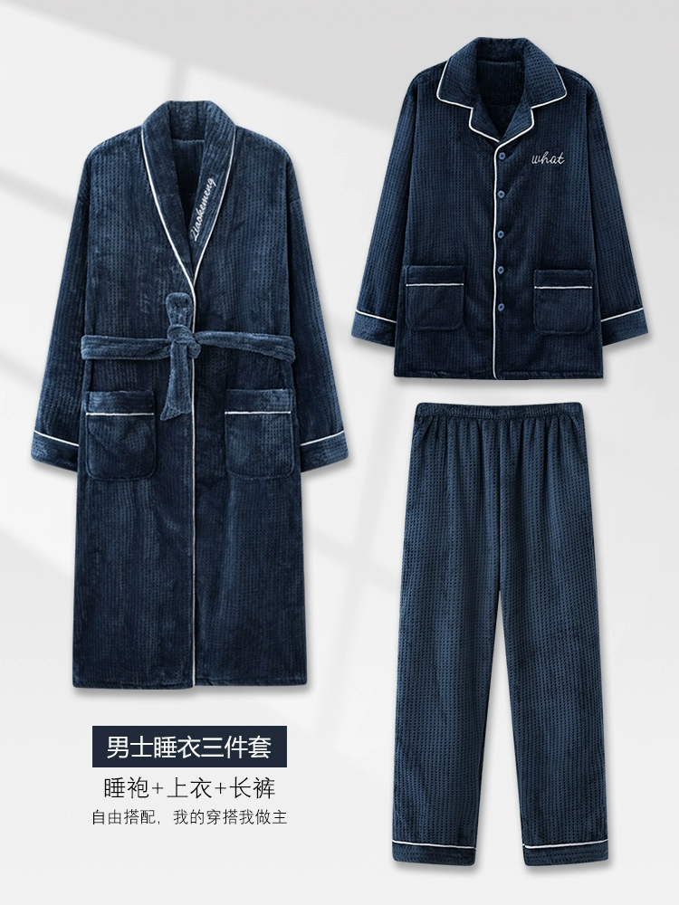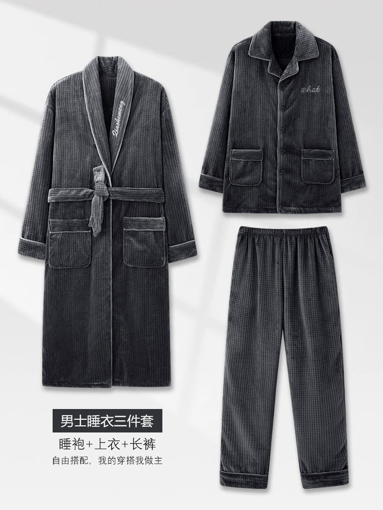 Palan Dot three -piece pajamas men’s autumn and winter coral velvet thick velvet, winter robe winter large size home service