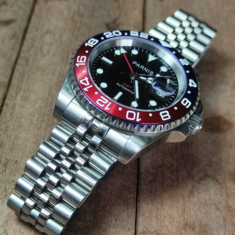 | nameOriginal | Parnis Automatic Mechanical Watch Greene GMT Two Time Men's Super Luminous Genuine Waterproof Steel Belt |