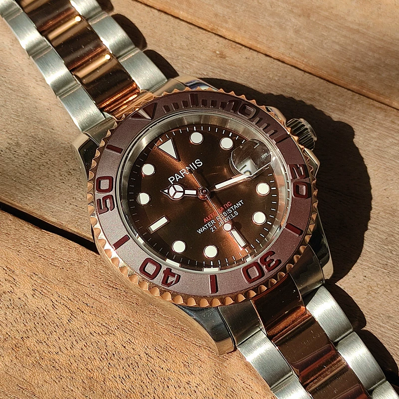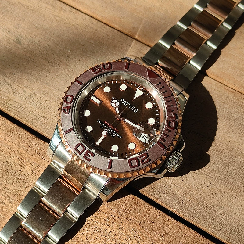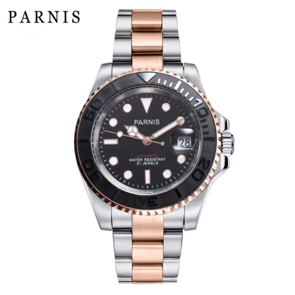 Parnis automatic mechanical watch trendy brand waterproof Miyota 8215 movement men’s business room rose gold