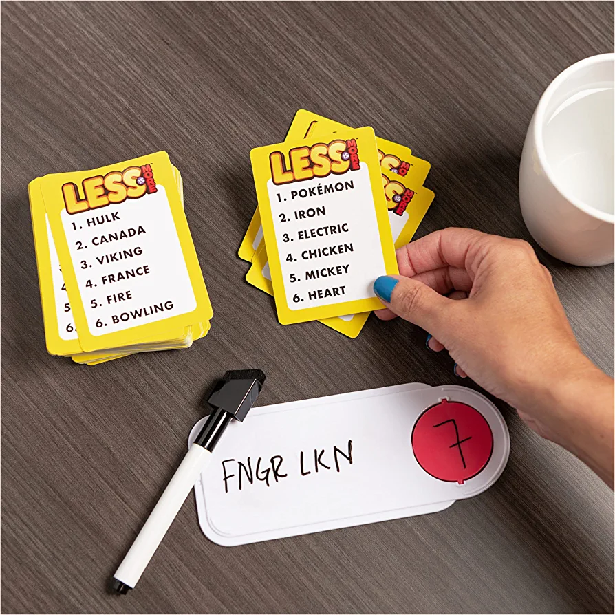 | nameOriginal | Less is More, Party Board Game Fun Word Letter Card Game Funny Gift Toy Living Room Family Game Night, For Adults, Teens, And Kids Ages 8 And Up |